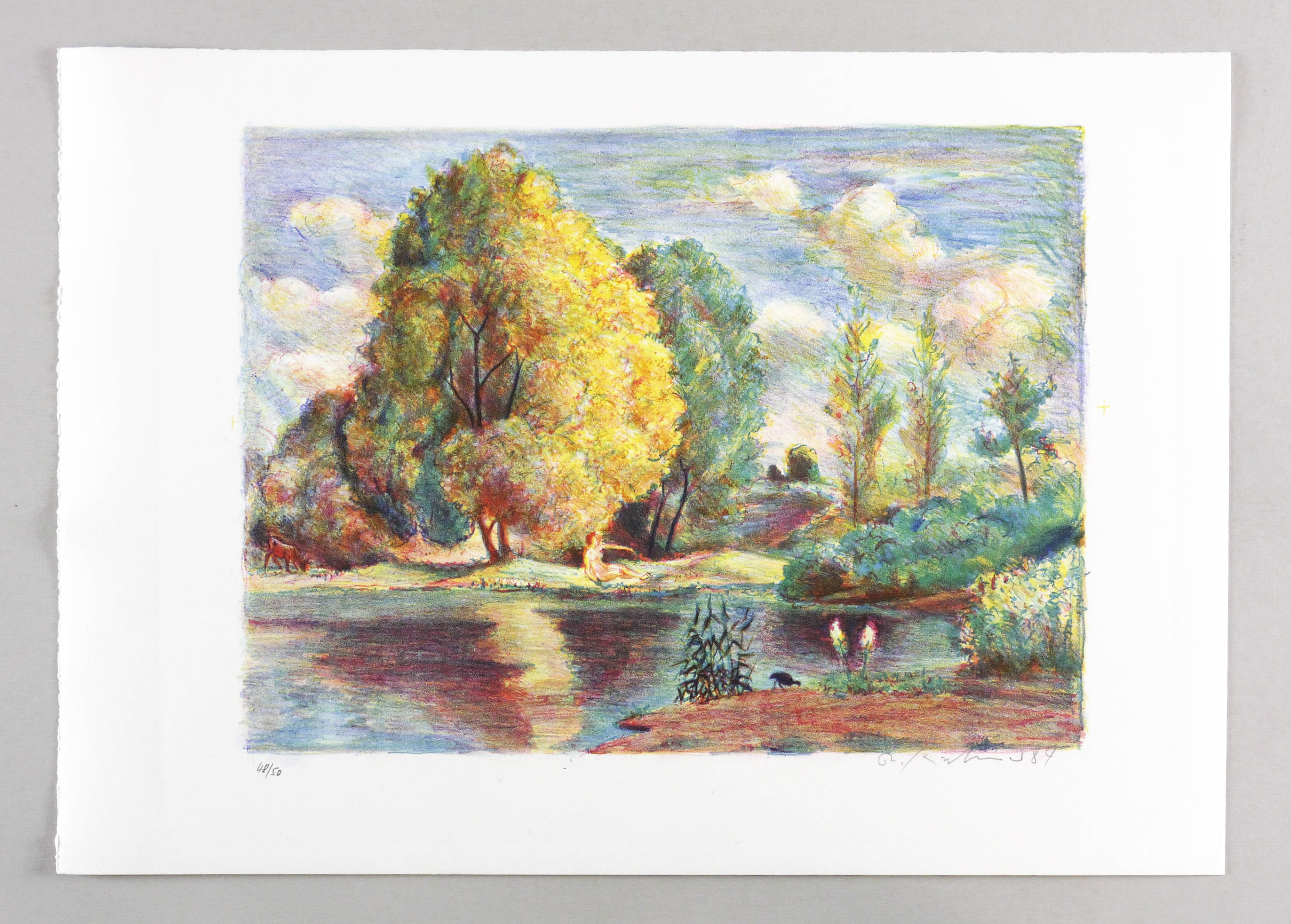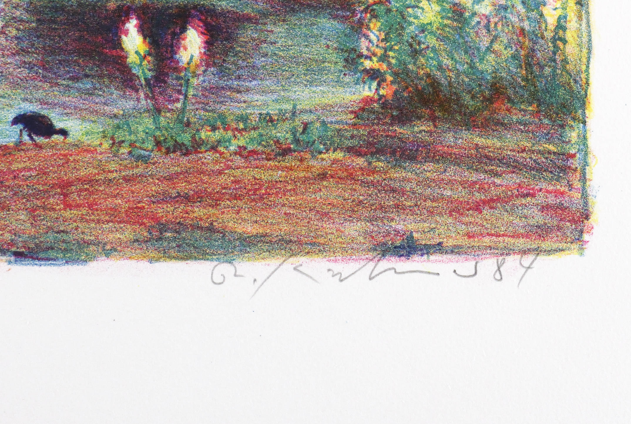 1984. Farblithografie / Kreidelithografie, in 3 Farben, auf festem weißem Velin. – Originale Künstlergrafik, von Robert Kirchner. – Auflage Exemplar Nr. 48/50. – 29,2 x 39,4 cm (Darstellung / Druckbild), 38 x 54 cm (Blatt).