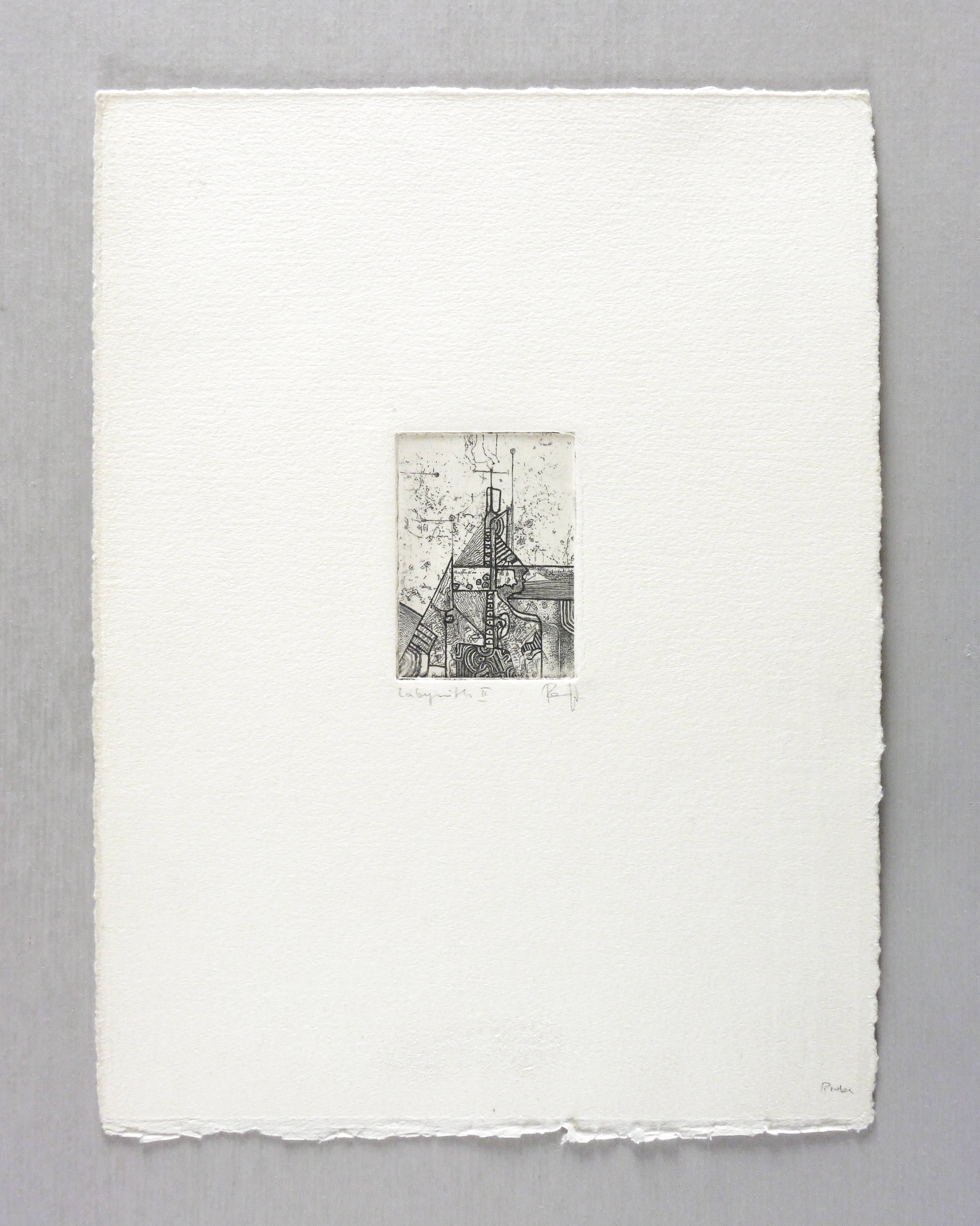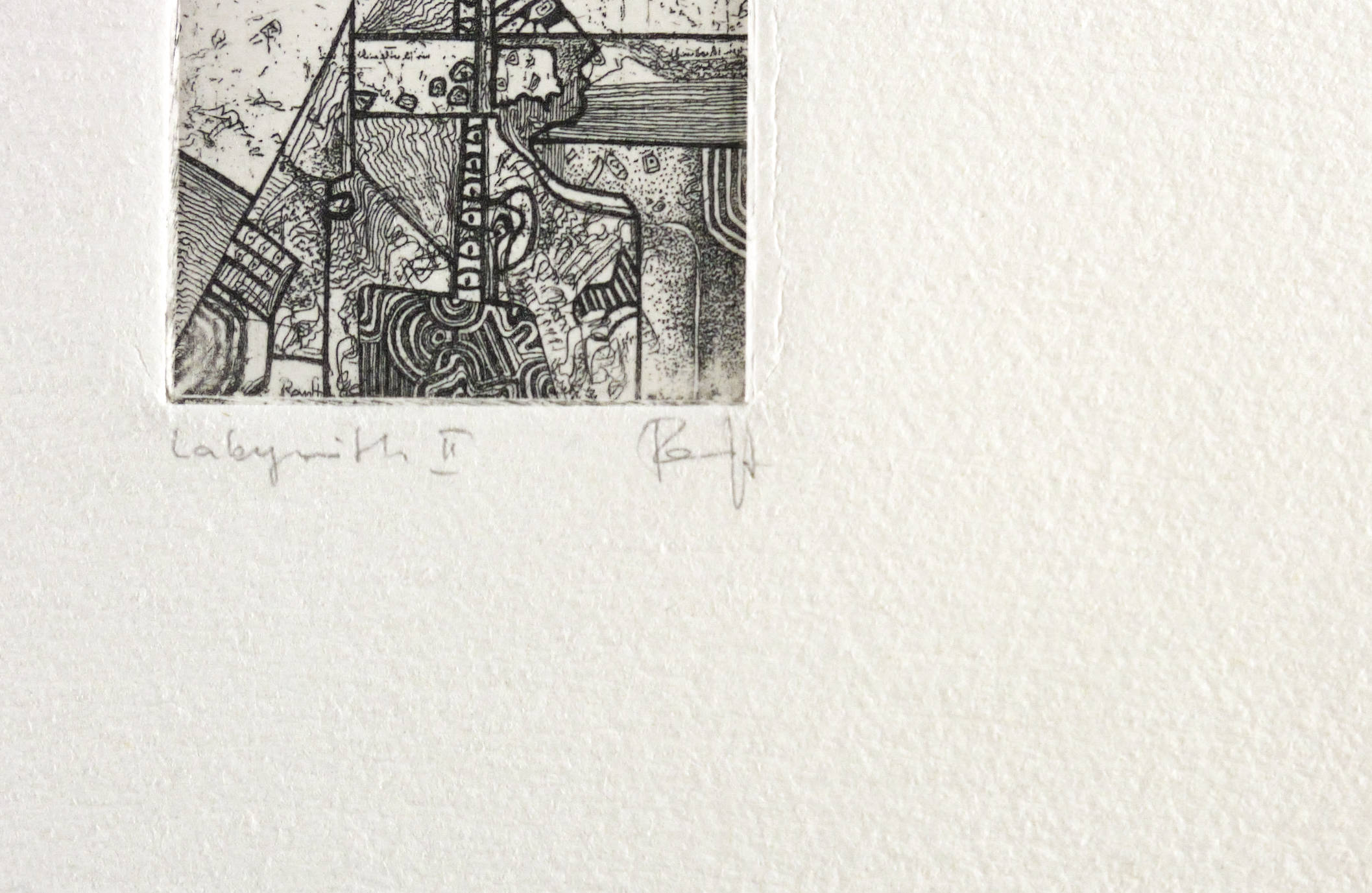 Aus: Für Lothar Lang zum 60. Geburtstag. Grafik-Edition XXVIII (Leipzig: Reclam 1988). – Rechts unten in Bleistift signiert: ″Ranft″. Links Titel: ″Labyrinth II″. In der rechten unteren Blattecke Auflagenbezeichnung: ″Probe″. Wasserzeichen der Hahnemühle. – Schönes Exemplar. Hervorragender Zustand.