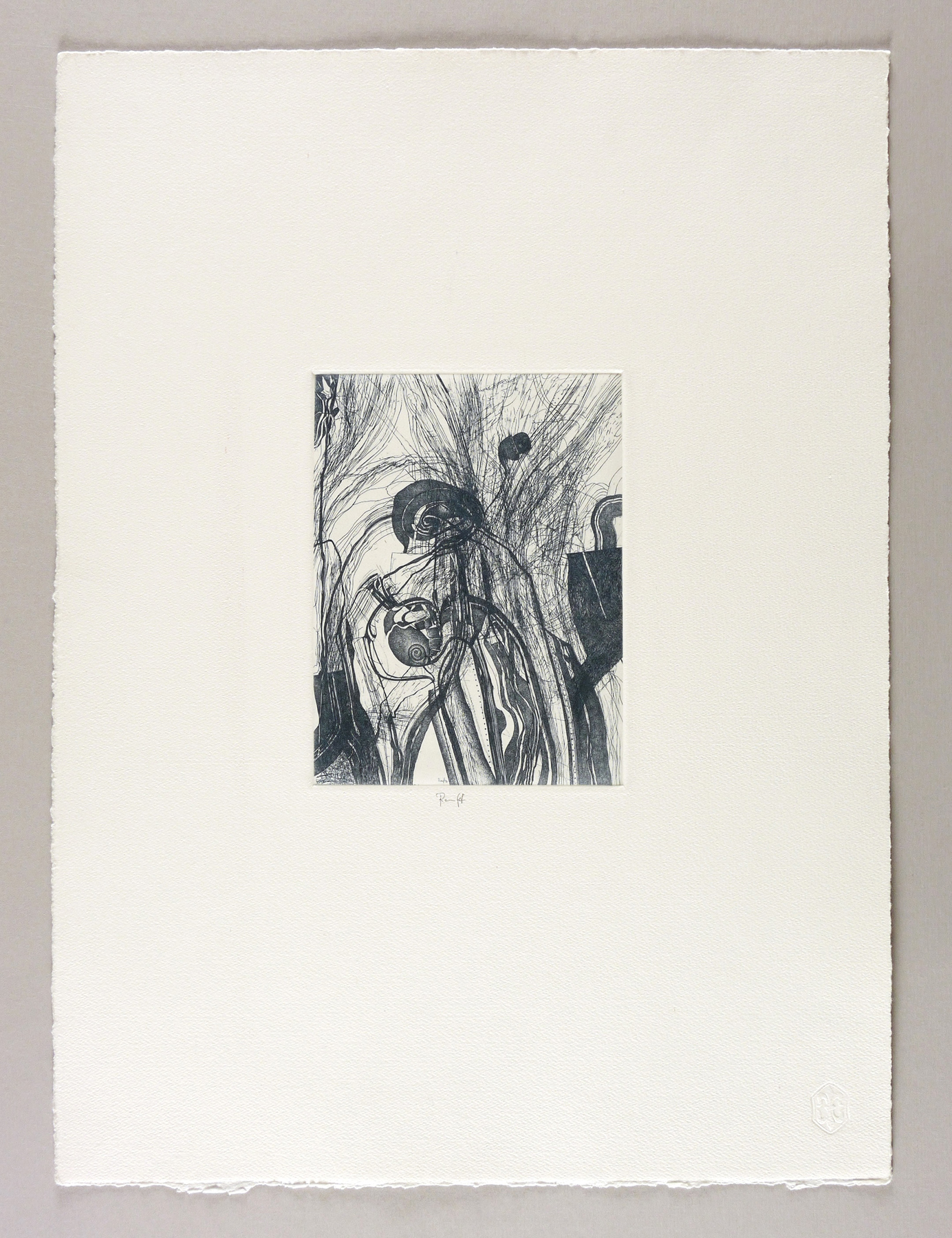1978. Radierung / Strichätzung & Kaltnadel, in Scharzgrün, auf hellchamois Büttenkarton. – Von Thomas Ranft. – 19,7 x 14,7 cm (Darstellung / Platte), 54 x 40 cm (Blatt).