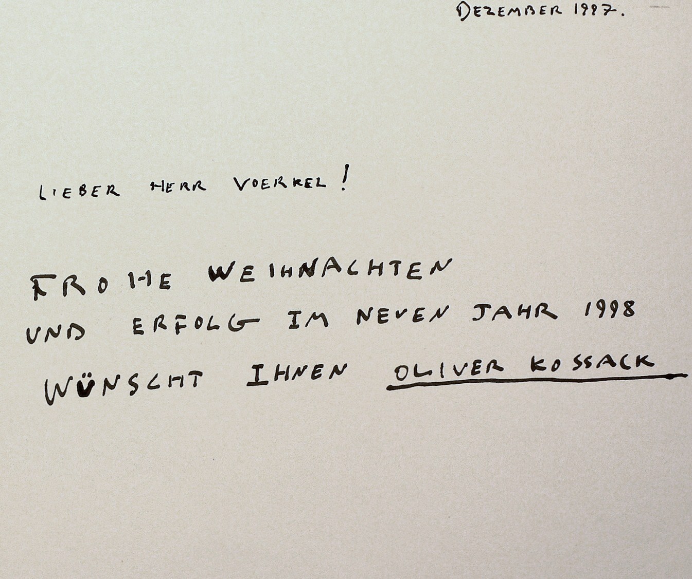 1997. Farblithografie. – Neujahrsgrafik, von Oliver Kossack. – 21,6 x 39,4 cm (Darstellung / Einfassungslinie).