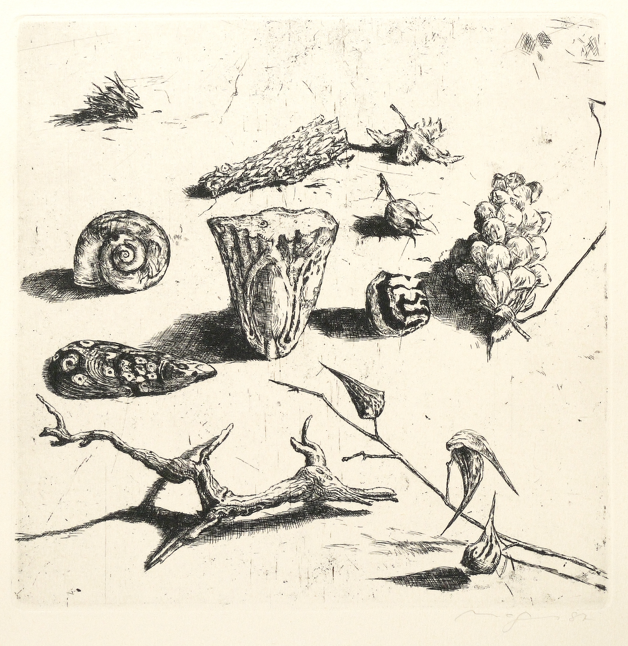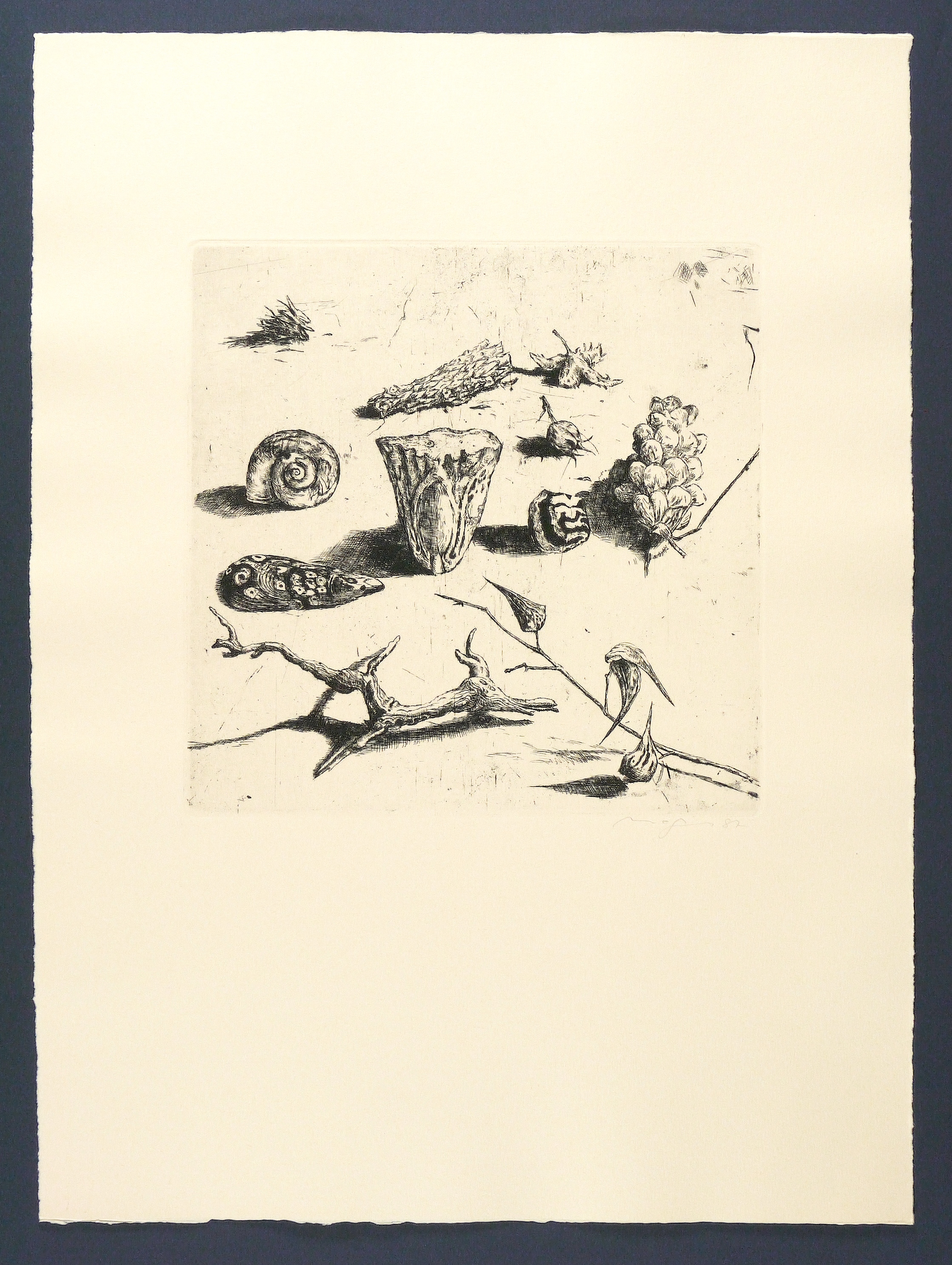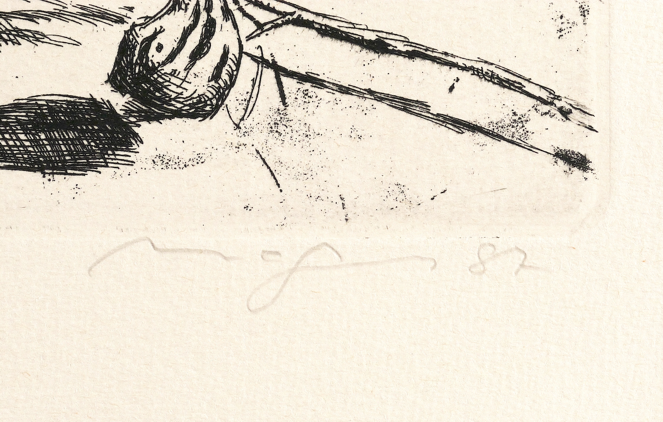 1987. Radierung / Strichätzung, in Schwarz, mit Plattenton, auf Hahnemühle. – Originale Künstlergrafik, von Klaus Magnus. – 25,8 x 25,8 cm (Darstellung / Platte), 53 x 39,5 cm (Blatt).