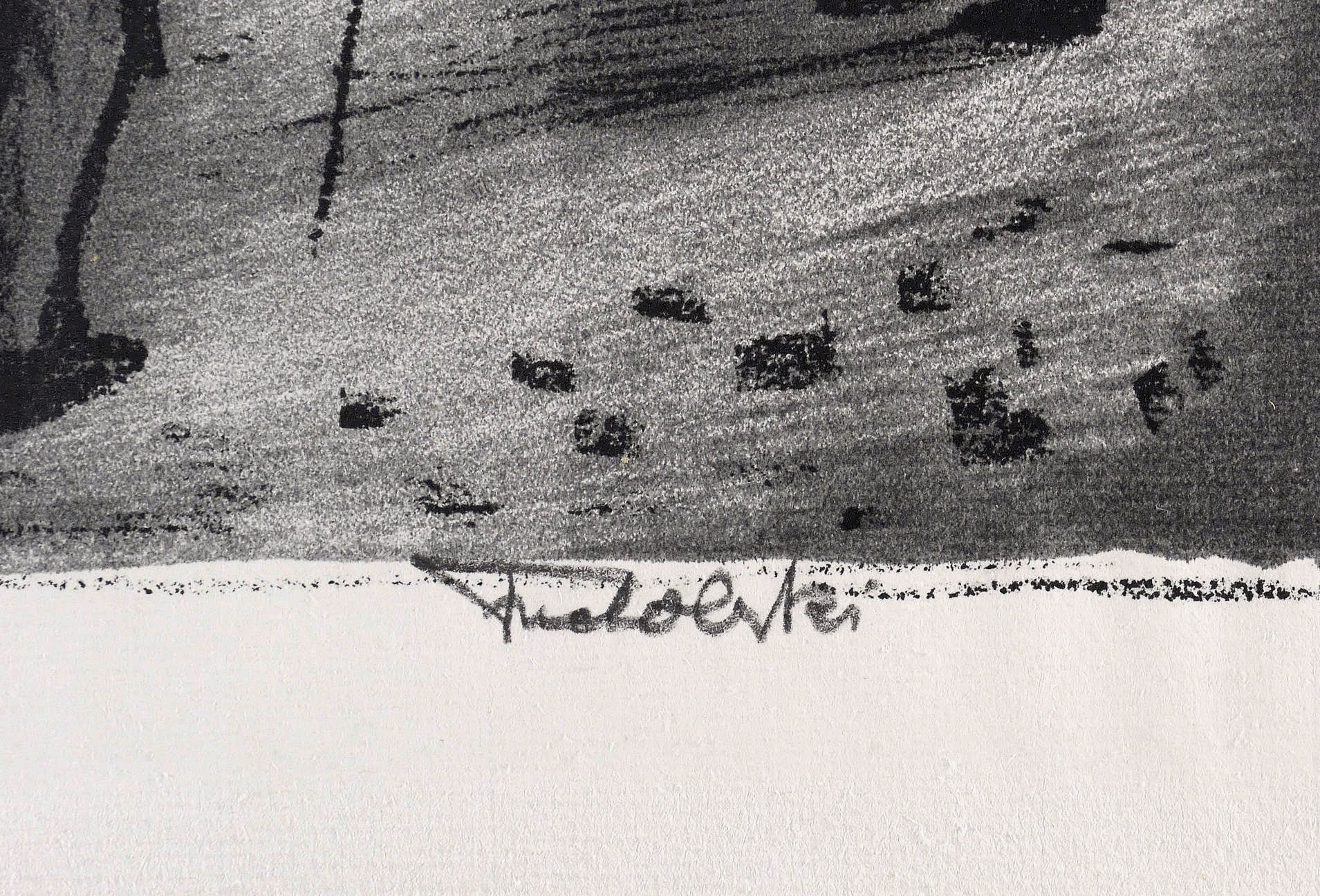 1958. Farblithografie / Kreidelithografie, in Grau & Schwarz, auf rauem hellgelbem Bütten. – Originale Künstlergrafik, von Herbert Tucholski. – 30,7 x 48,6 cm (Darstellung / Druckbild), 37 x 54 cm (Blatt).