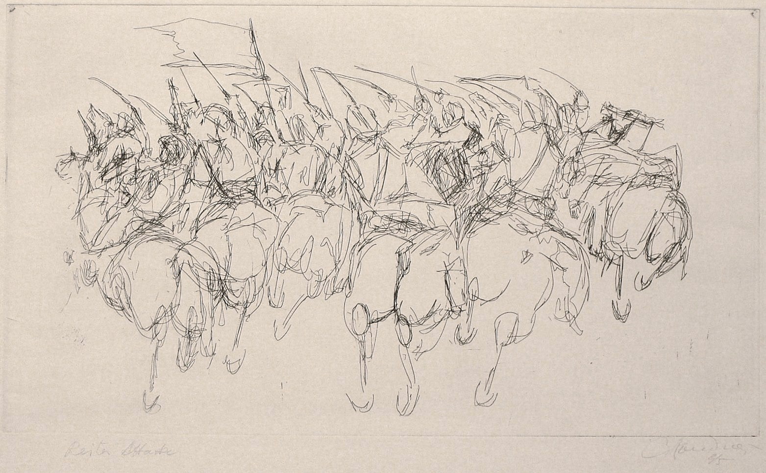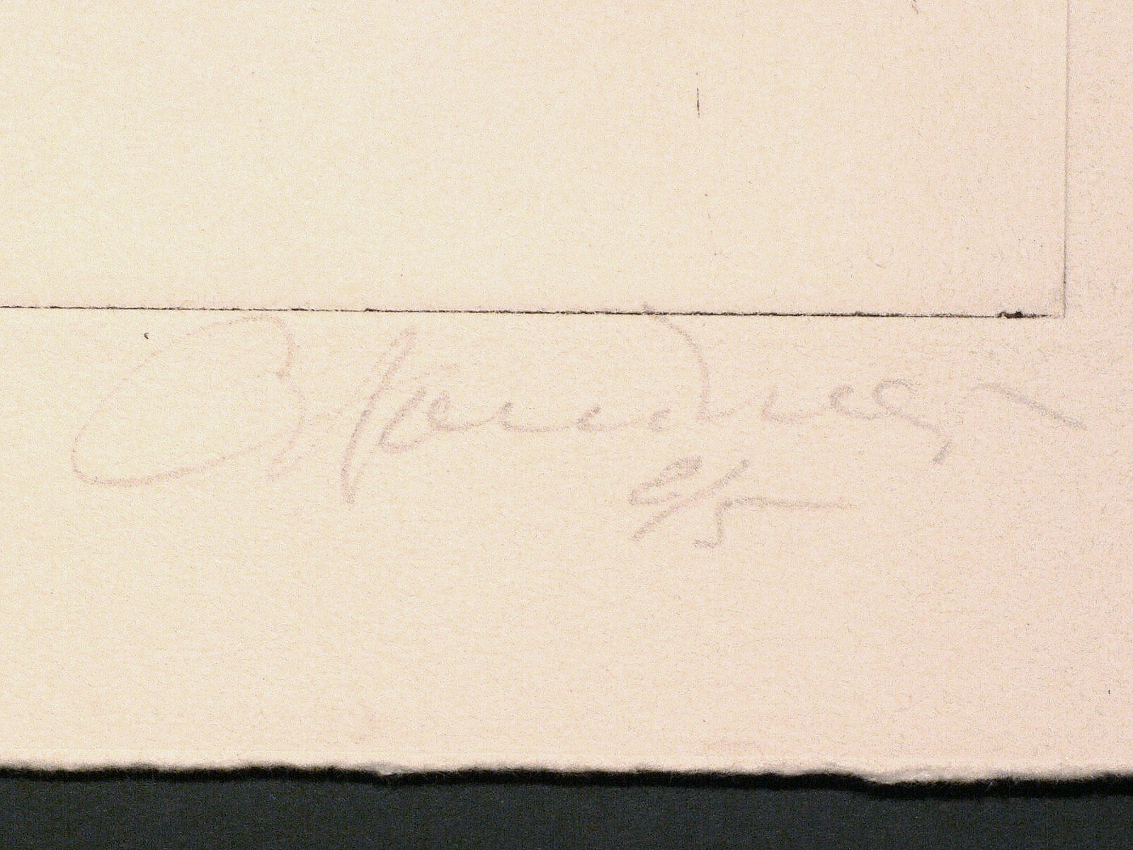 Rechts unterhalb der Platte in Bleistift signiert und nummeriert. Dazu eigenhändig rechts Auflagenbezeichnung und links Titel. – Minimal wellig und knickspurig. Sehr gut erhaltenes Blatt.