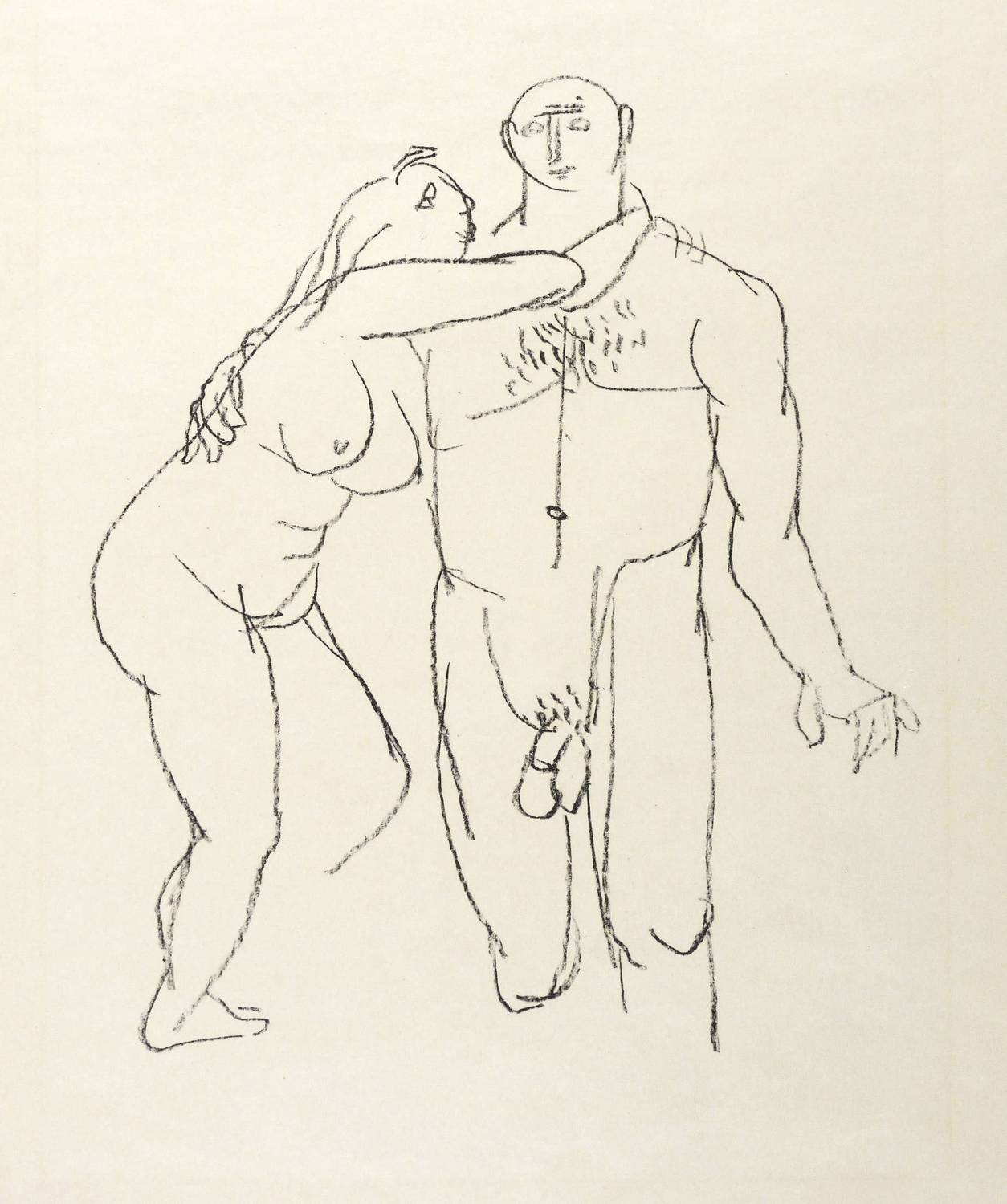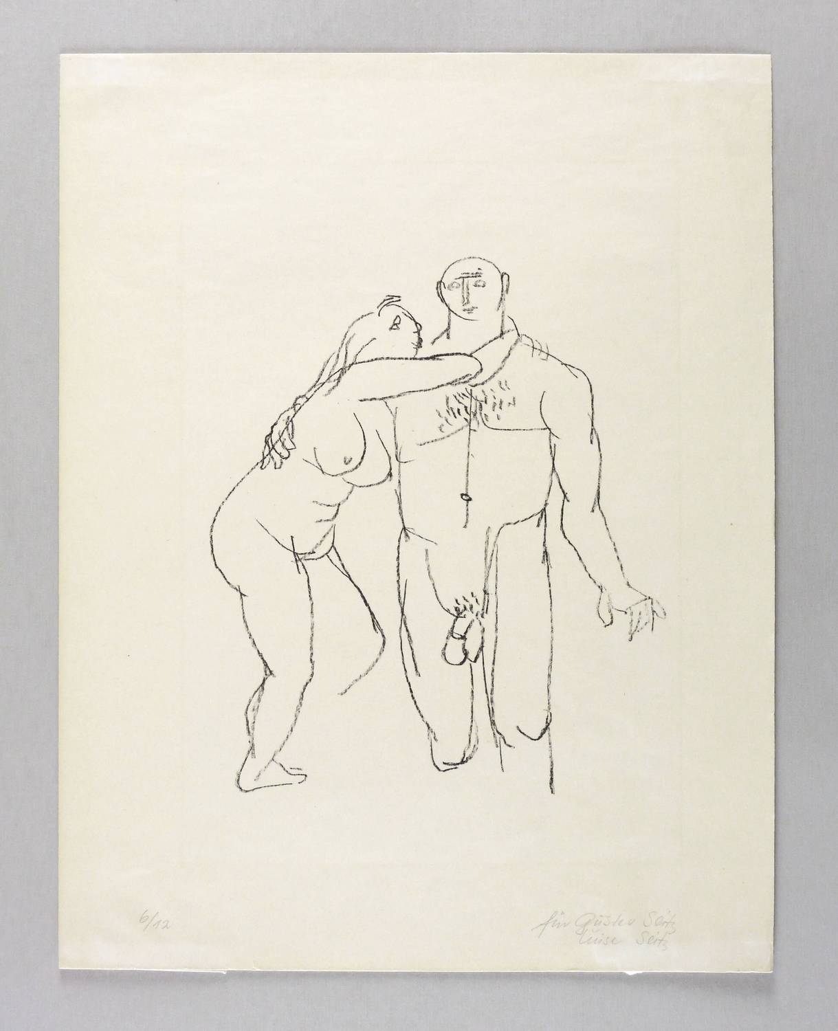 1968. Lithografie / Kreidelithografie, auf glattem gelblichen Papier. – Originale Künstlergrafik, von Gustav Seitz. – Auflage Exemplar Nr. 6/12. – 26,8 x 22,8 cm (Darstellung / Druckbild), 46 x 36 cm (Blatt).