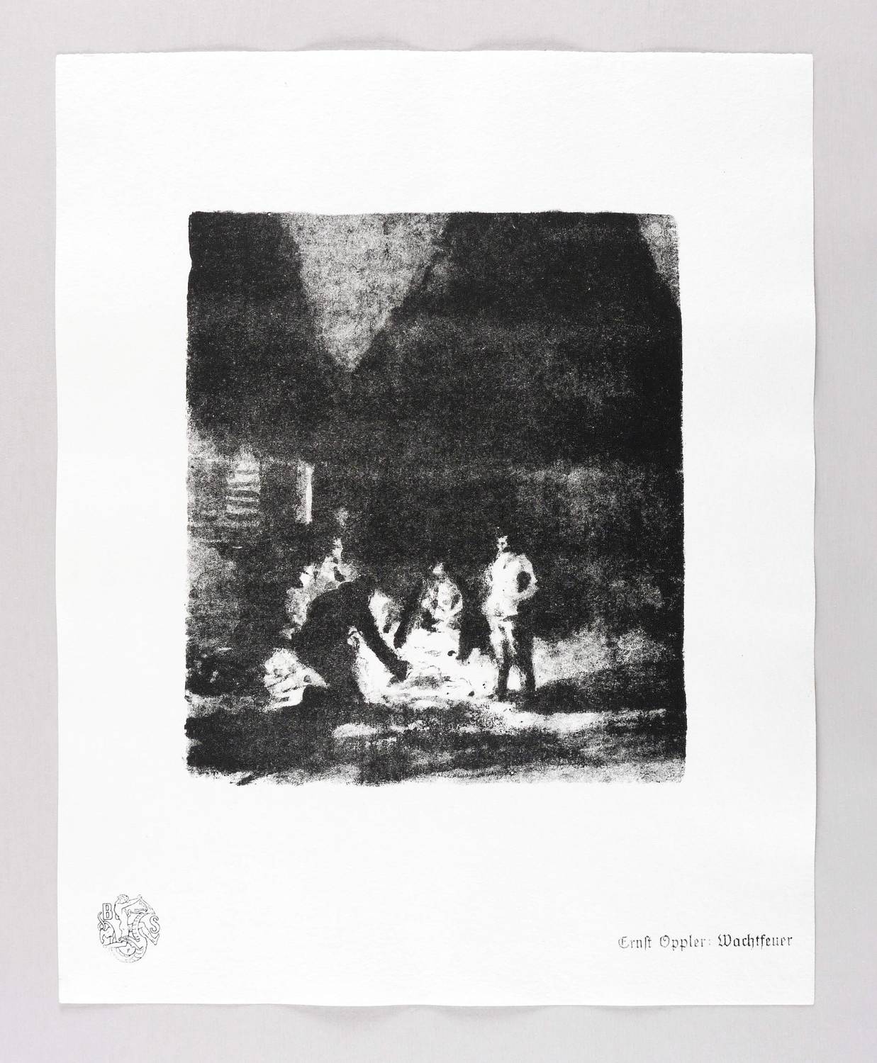 Aus: Krieg und Kunst. Original-Steinzeichnungen der Berliner Sezession (Berlin: Julius Bard 1915-1918). – Nicht handsigniert. Im Blattrand rechts unten typografisch bezeichnet: ″Ernst Oppler: Wachtfeuer″. Links unten Vignette der Berliner Secession. – Originalrandiges Exemplar. Tadellos. Sehr guter Zustand.