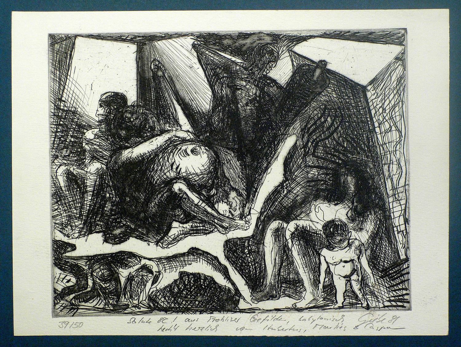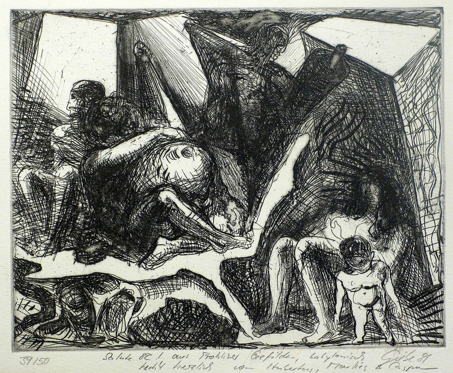 1981. Radierung / Kaltnadel, in Schwarz, auf hellchamois Velin. – Originale Künstlergrafik, von Hubertus Giebe. – Auflage Exemplar Nr. 39/50. – 19,4 x 24,6 cm (Darstellung / Platte), 23 x 30 cm (Blatt).