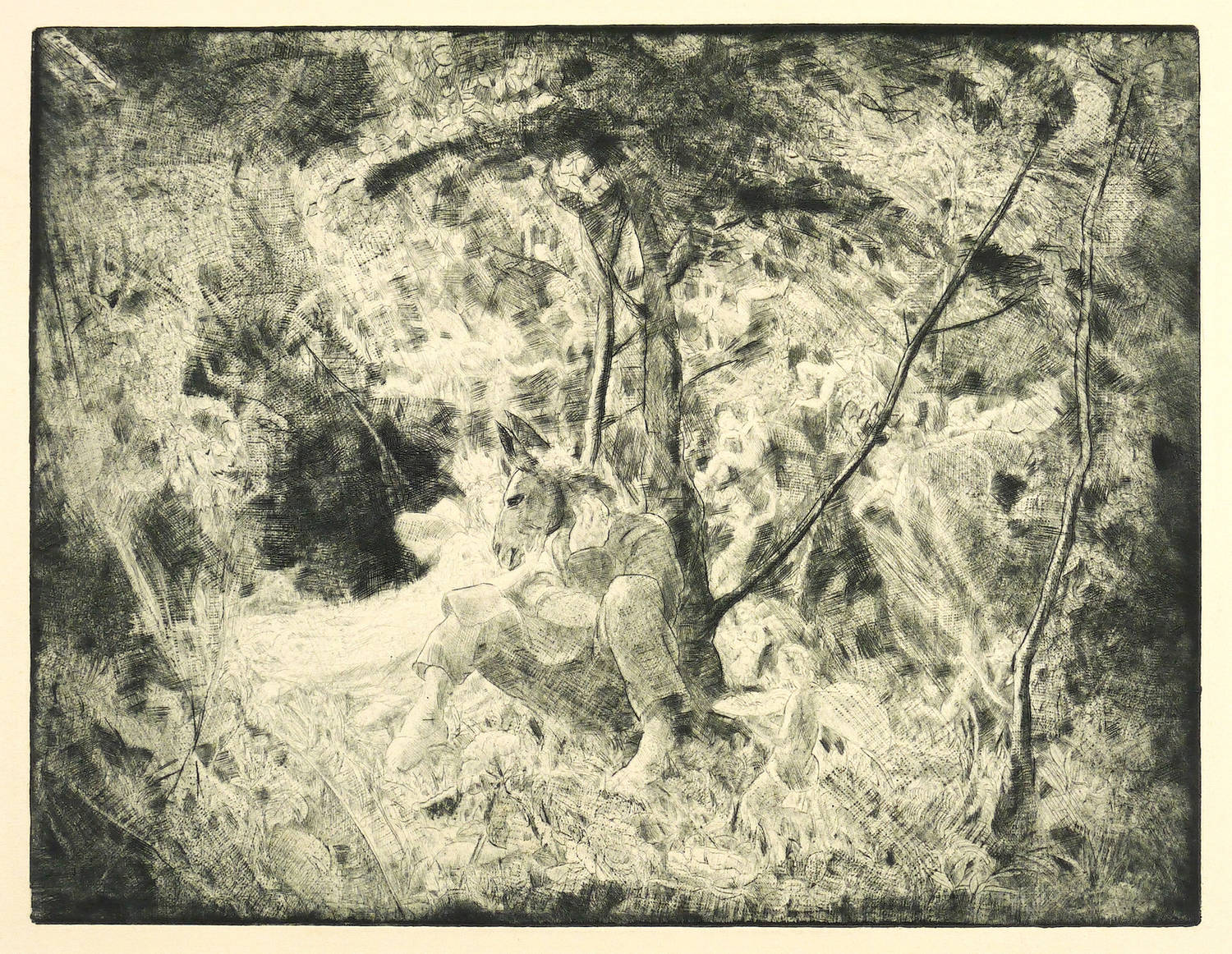 Aus: Freunde Graphischer Kunst. Jahresgabe VII (Leipzig: 1919). – Nicht handsigniert. Verso von fremder Hand bezeichnet und datiert. – Die Darstellung zeigt aus dem Bühnengeschehen von A Midsummer Night's Dream von William Shakespeare die Verwandlung des Kopfes des Handwerkers Niklaus Zettel in einen Eselskopf, nichtsdestotrotz sich die von Oberon verzauberte Titania beim Erwachen in ihn verlieben wird. – Sehr schön erhalten.