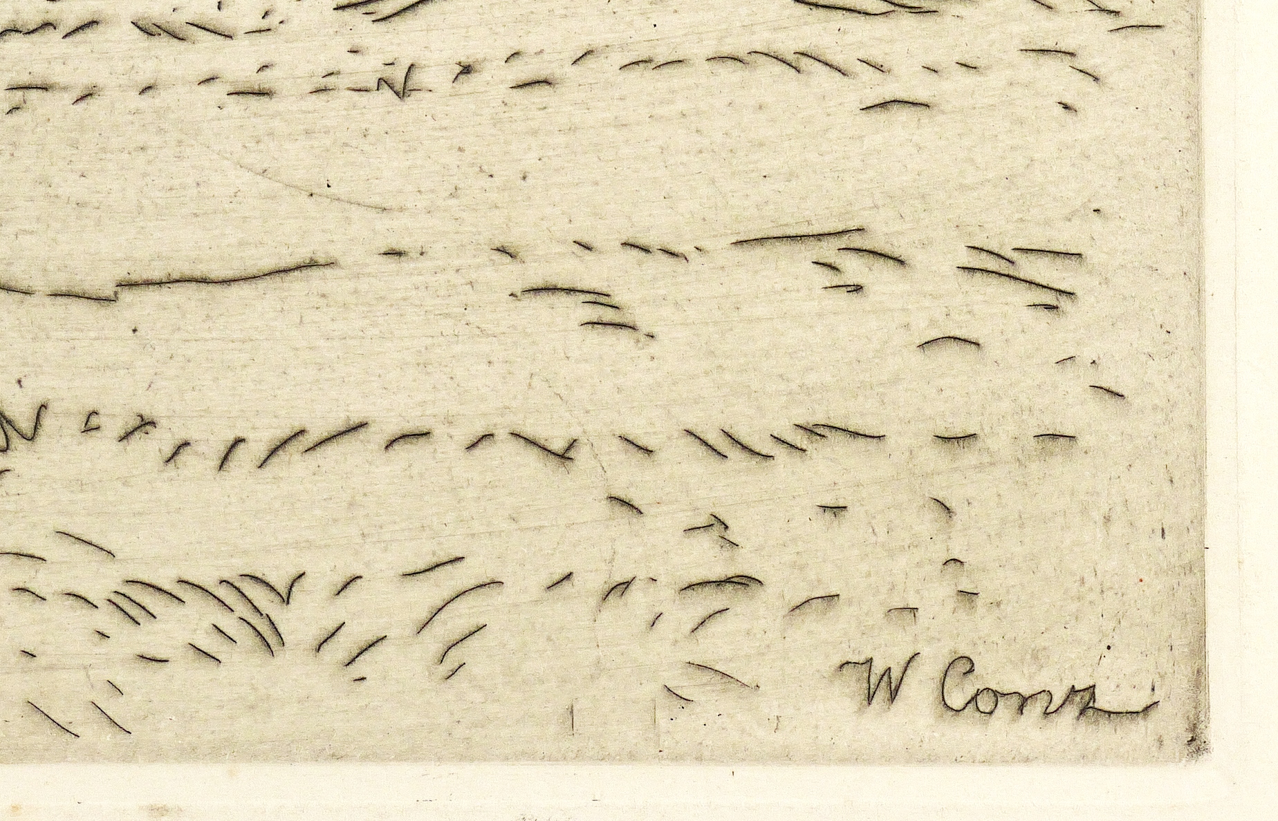 1916. Radierung / Strichätzung, in Schwarz, auf hellem Kupferdruckkarton. – Originale Künstlergrafik, von Walter Conz. – 28,6 x 40,0 cm (Darstellung), 29,2 x 40,5 cm (Platte), 38 x 51 cm (Blatt).