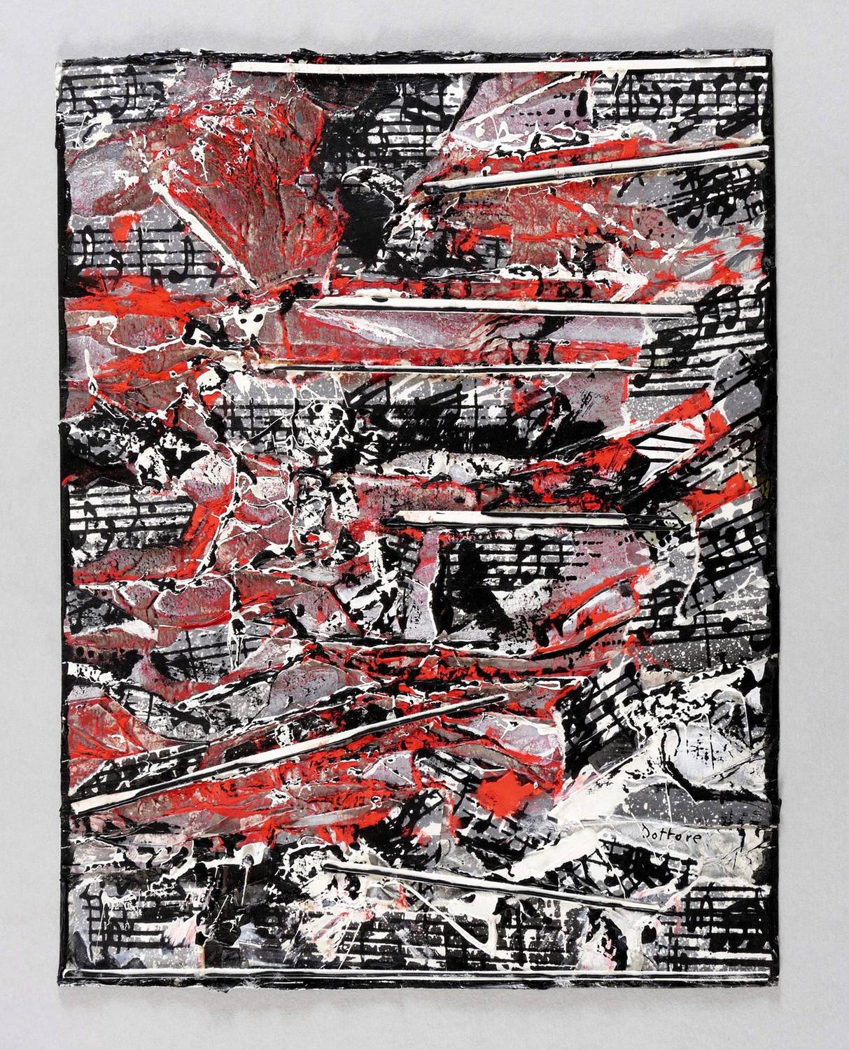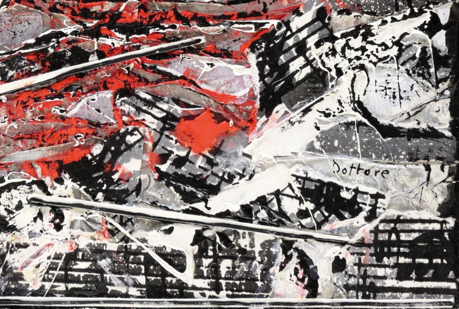 1979/1989. Mischtechnik / Papiercollage, Tusche & Deckfarbe, in Weiß, Schwarz & Rot, auf grauem Grund. – Originale Künstlergrafik, von Dottore. – Unikat. – 22,2 x 17,0 cm (Darstellung / Blatt).