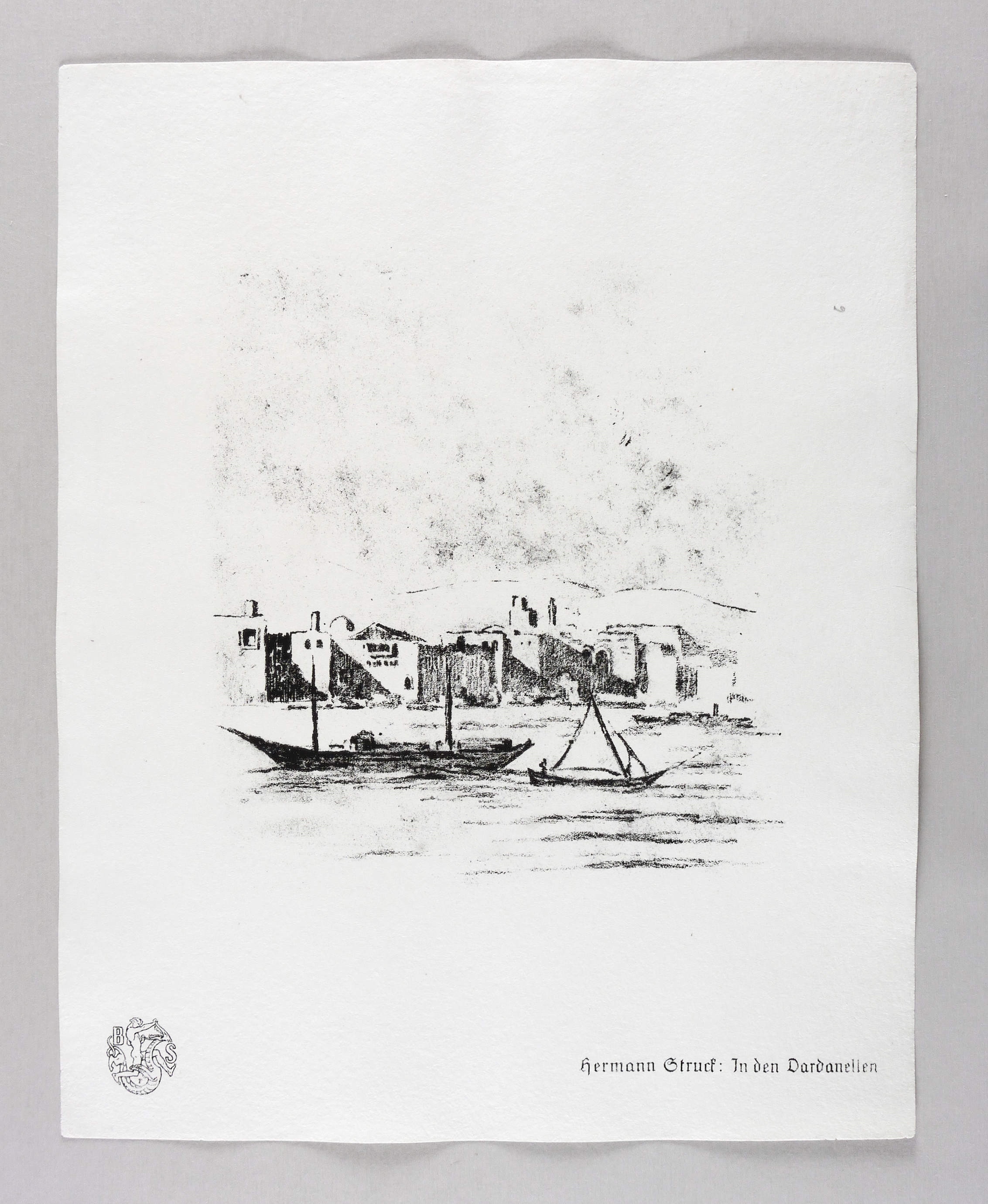 Aus: Krieg und Kunst. Original-Steinzeichnungen der Berliner Sezession (Berlin: Julius Bard 1916). – Nicht handsigniert. Im Blattrand rechts unten typografisch bezeichnet: ″Hermann Struck: In den Dardanellen″. Links unten Vignette der Berliner Secession. – Originalrandiges Exemplar. Sehr guter Zustand.