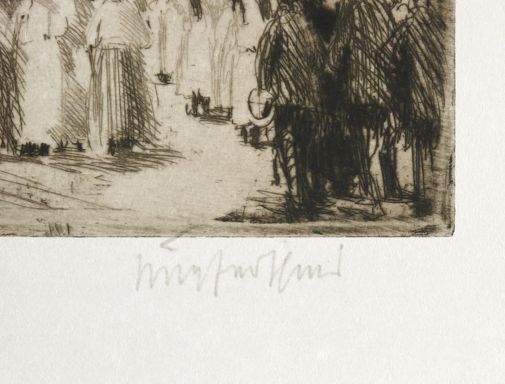 1919. Radierung / Strichätzung & Kaltnadel, mit Plattenton, in Schwarz, auf feinstem weißem Japan. – Originale Künstlergrafik, von Hermann Kupferschmid. – 12,1 x 16,1 cm (Darstellung / Platte), 17 x 25 cm (Blatt).