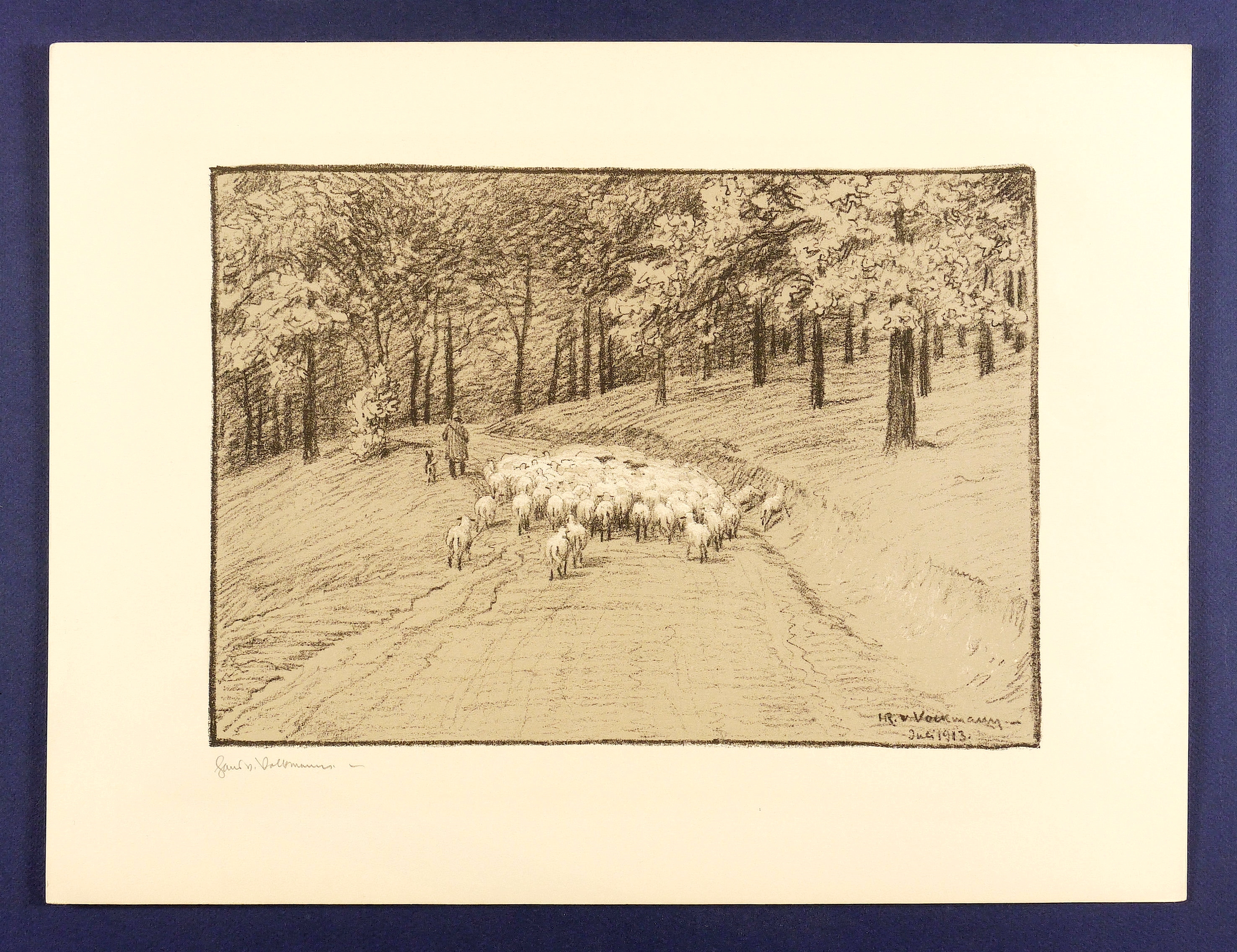 Links unten in Bleistift signiert. Im Stein rechts unten Signatur und Jahr: ″HR. v Vokmann - / Juli 1913.″ Verso Stempel der Kunstdruckerei Künstlerbund Karlsruhe mit handschriftlicher Katalognummer ″207″. – Sehr gut erhalten.