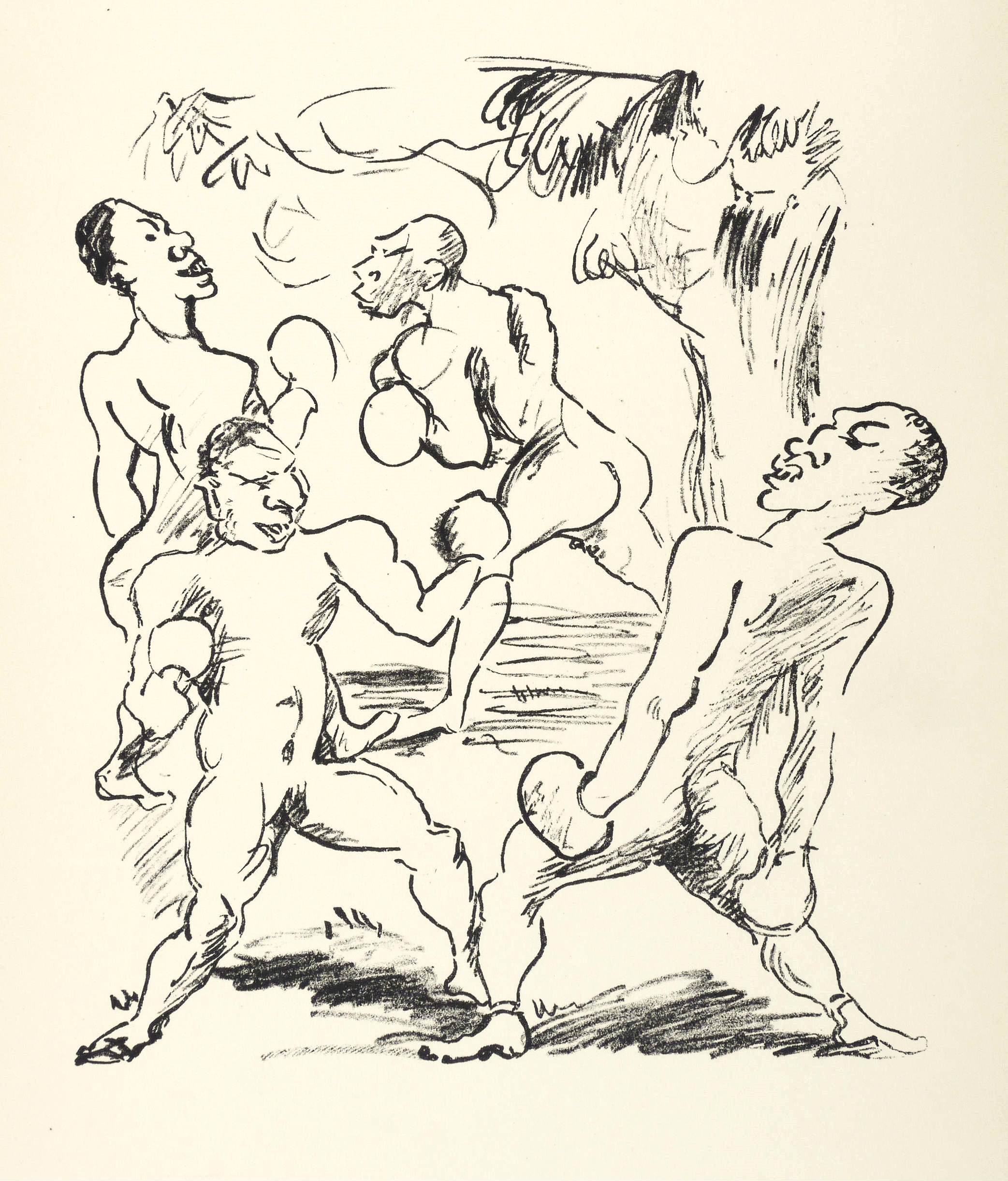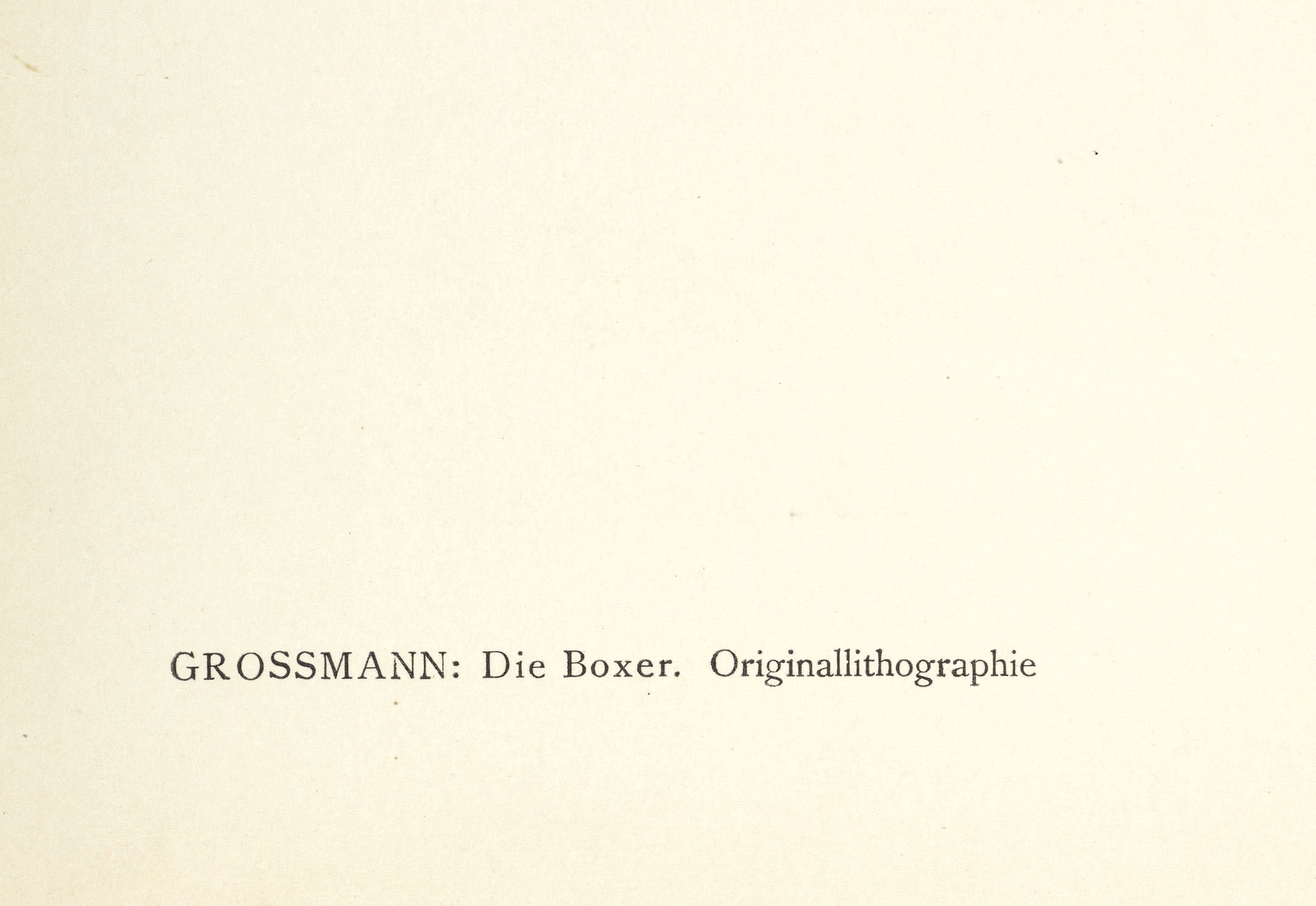 Söhn HDO 108-5. – Aus: Kurt Pfister, Deutsche Graphiker der Gegenwart (Leipzig: Klinkhardt & Biermann 1920). – Nicht handsigniert. Verso typografisch bezeichnet: ″GROSSMANN: Die Boxer. Originallithographie″. Dazu in Bleistift nummeriert. – Erschienen in einer Auflage von 100 Exemplaren als originalgrafische Beilage zu ″Deutsche Graphiker der Gegenwart″ von Kurt Pfister (Blatt Nr. 7, 1920). – Obere Ecken etwas gestaucht. Insgesamt guter Zustand.