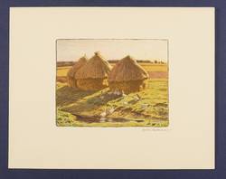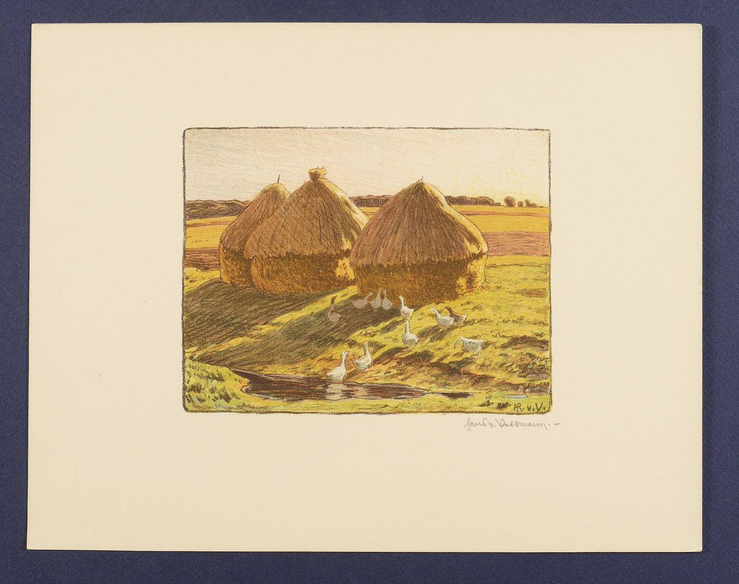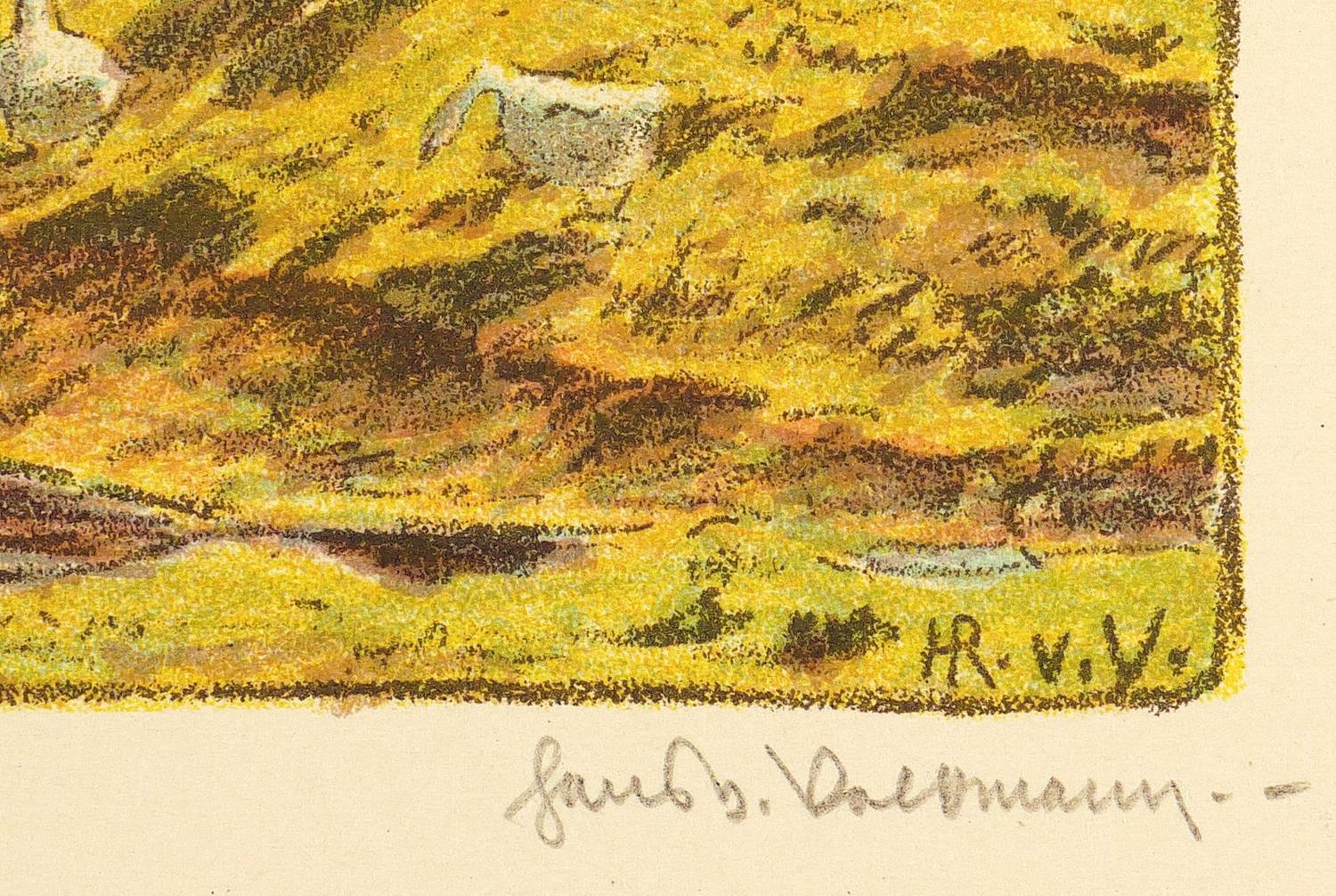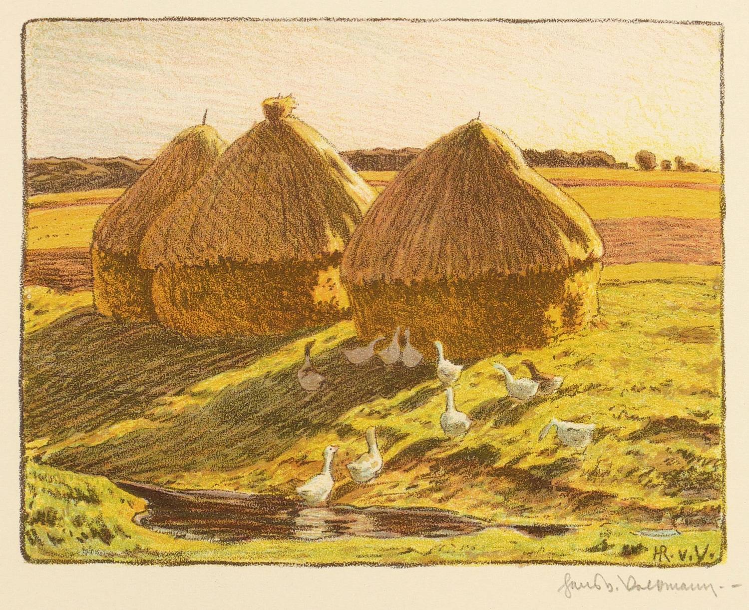 Um 1905. Farblithografie / Kreidelithografie, in 5 Farben, auf hellgelbem Karton. – Originale Künstlergrafik, von Hans Richard von Volkmann. – 12,3 x 15,7 cm (Darstellung), 23 x 29 cm (Blatt).