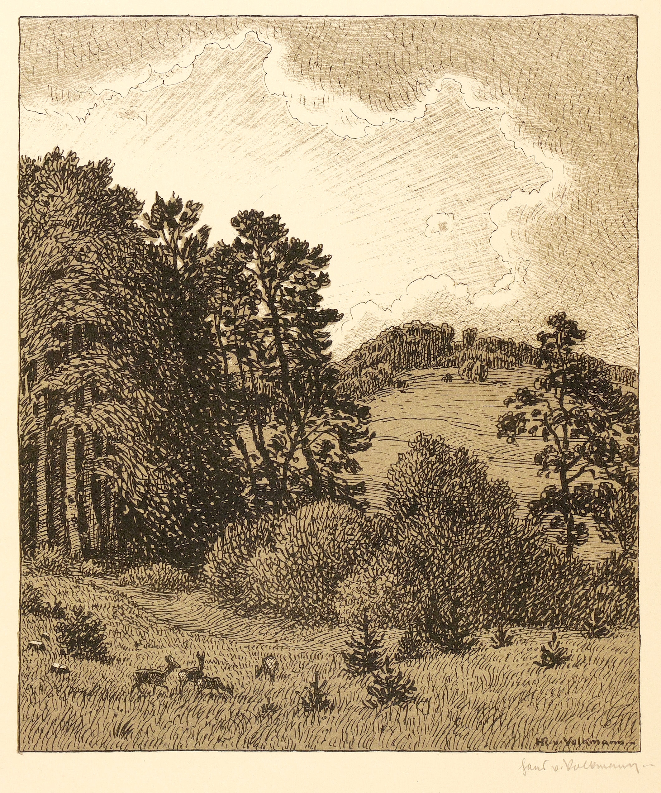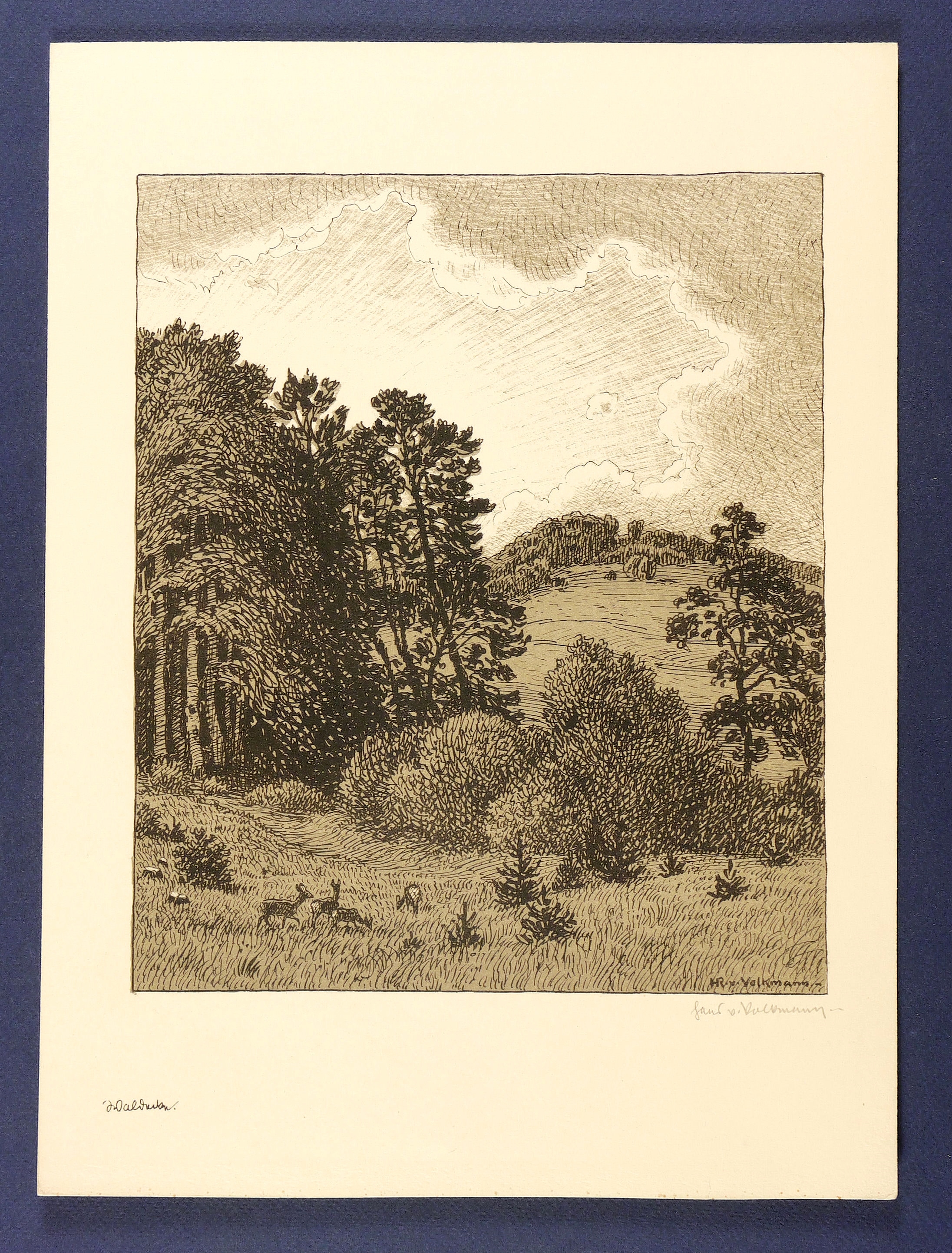 Hans Richard von Volkmann (1860 Halle/Saale - 1927 Halle/Saale). Deutscher Landschaftsmaler und Grafiker. Mitglied der Schwälmer Willingshäuser Malerkolonie. 1880-88 Studium an der Akademie in Düsseldorf. 1892 als Meisterschüler von Gustav Schönleber dem Älteren 1892 an der Kunstschule in Karlsruhe. Entwickelte sich dort zum bedeutendsten Vertreter der sogenannten Karlsruher Landschaftsschule. Seine Farblithografien und Radierungen gehören neben denen von Hans Thoma zum Besten, was diese Schule hervorbrachte.