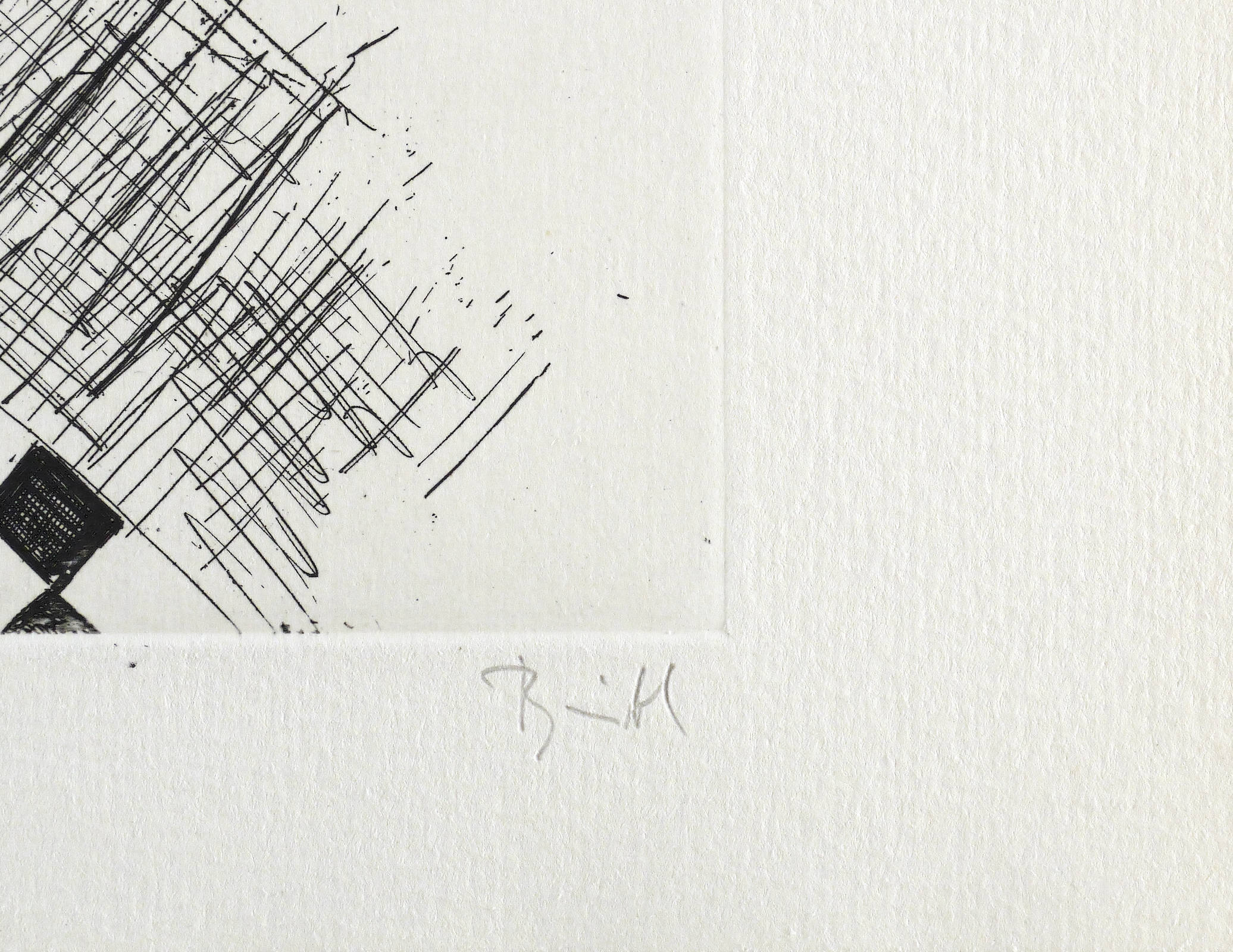 1986. Radierung / Kaltnadel, in Schwarz, auf hartem hellchamois Weißenborn. – Originale Künstlergrafik, von Rolf Biebl. – Auflage Exemplar Nr. 74/200. – 32,3 x 24,2 cm (Darstellung / Platte), 36 x 36 cm (Blatt).