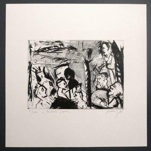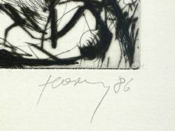 1986. Radierung / Kaltnadel, in Schwarz, auf hellem Velin. – Originale Künstlergrafik, von Norbert Hornig. – Auflage Exemplar Nr. 5/200. – 17,2 x 24,0 cm (Darstellung / Platte), 36 x 36 cm (Blatt).