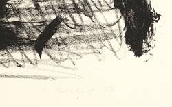 Aus: Mappe 77. Mappen des Magdeburger Grafikkreises (Magdeburg: Grafikkreis 1977), Bd. 12. – Rechts unten in Bleistift signiert und datiert. Links Auflagenbezeichnung. – Guter Zustand.