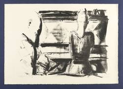 1984. Lithografie / Kreide- & Pinsellithografie, in Schwarz, auf gelbem Hahnemühle-Bütten. – Originale Künstlergrafik, von Dietrich Burger. – Auflage Exemplar Nr. 13/50. – 35,2 x 46,0 cm (Darstellung), 40 x 56 cm (Blatt).