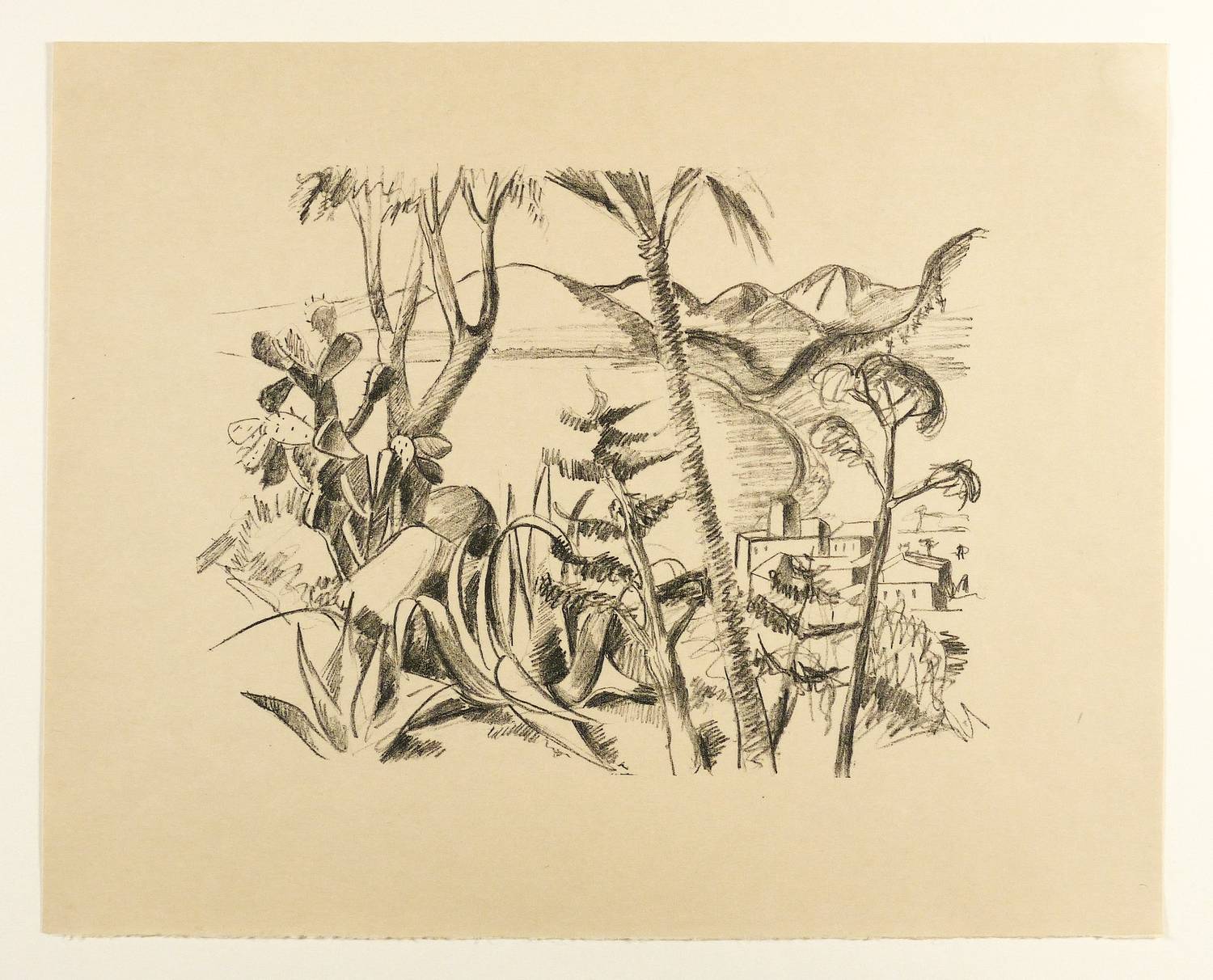1926. Lithografie / Kreidelithografie, in Schwarz, auf festem gelblichem Japanpapier. – Originale Künstlergrafik, von Cornelie Obermeyer. – Auflage Exemplar Nr. 121/275. – 23,9 x 30,8 cm (Darstellung), 36 x 44 cm (Blatt).