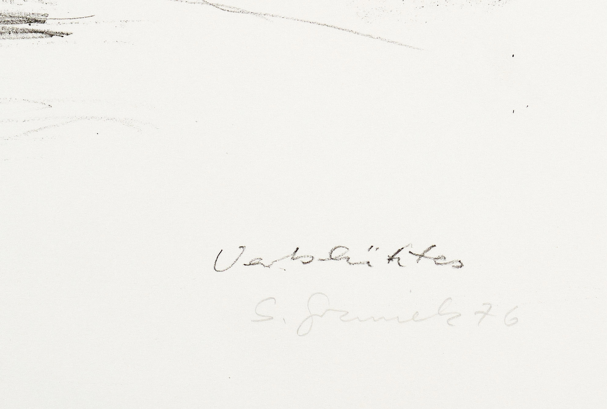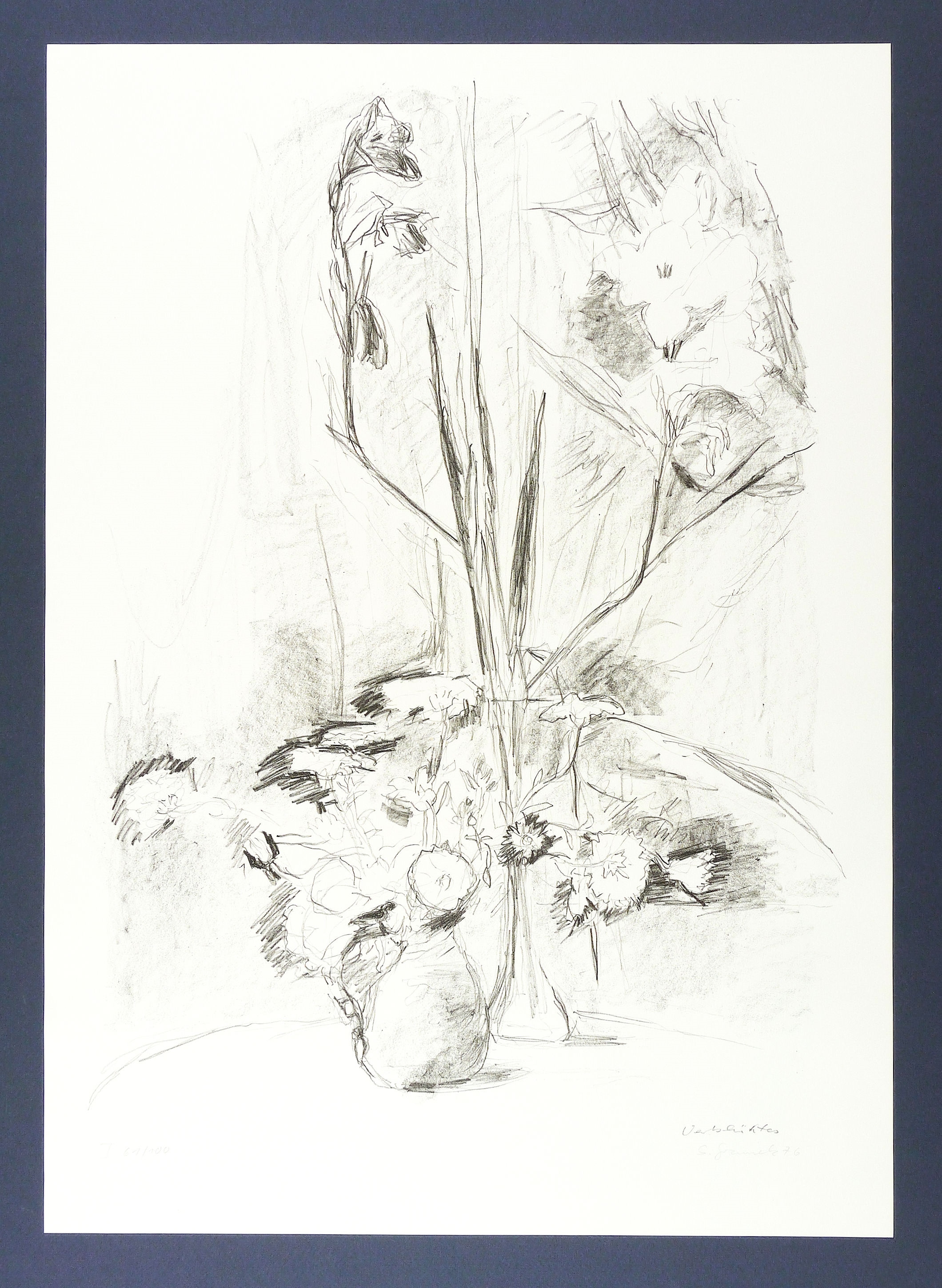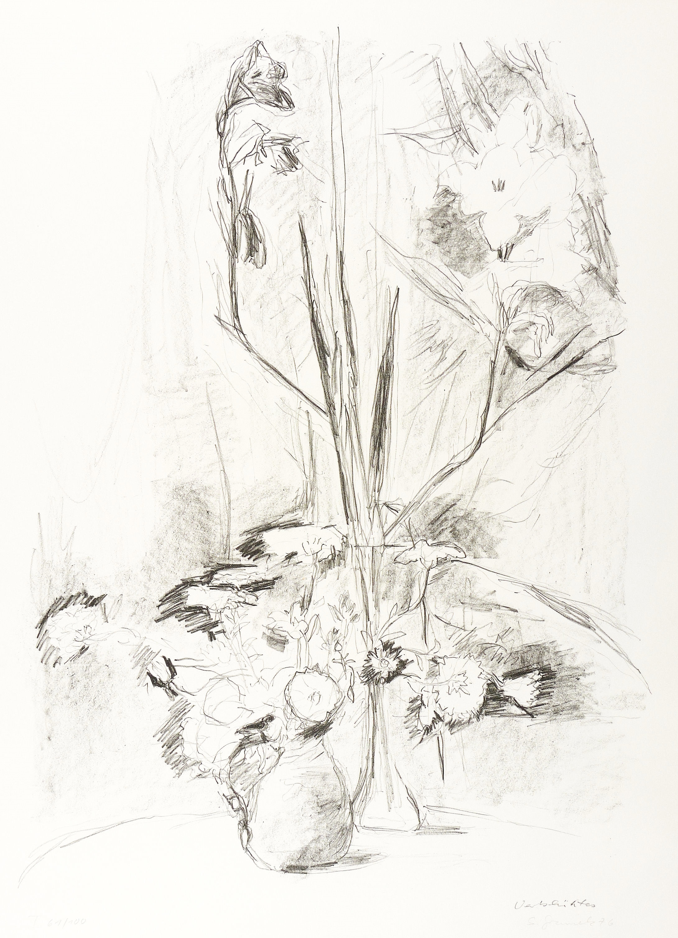 1976. Lithografie / Kreidelithografie, in Schwarz, auf weißem Velinkarton. – Originale Künstlergrafik, von Sabina Grzimek. – Auflage Exemplar Nr. 61/100. – 50,5 x 37,5 cm (Darstellung / Druckbild), 60 x 43 cm (Blatt).