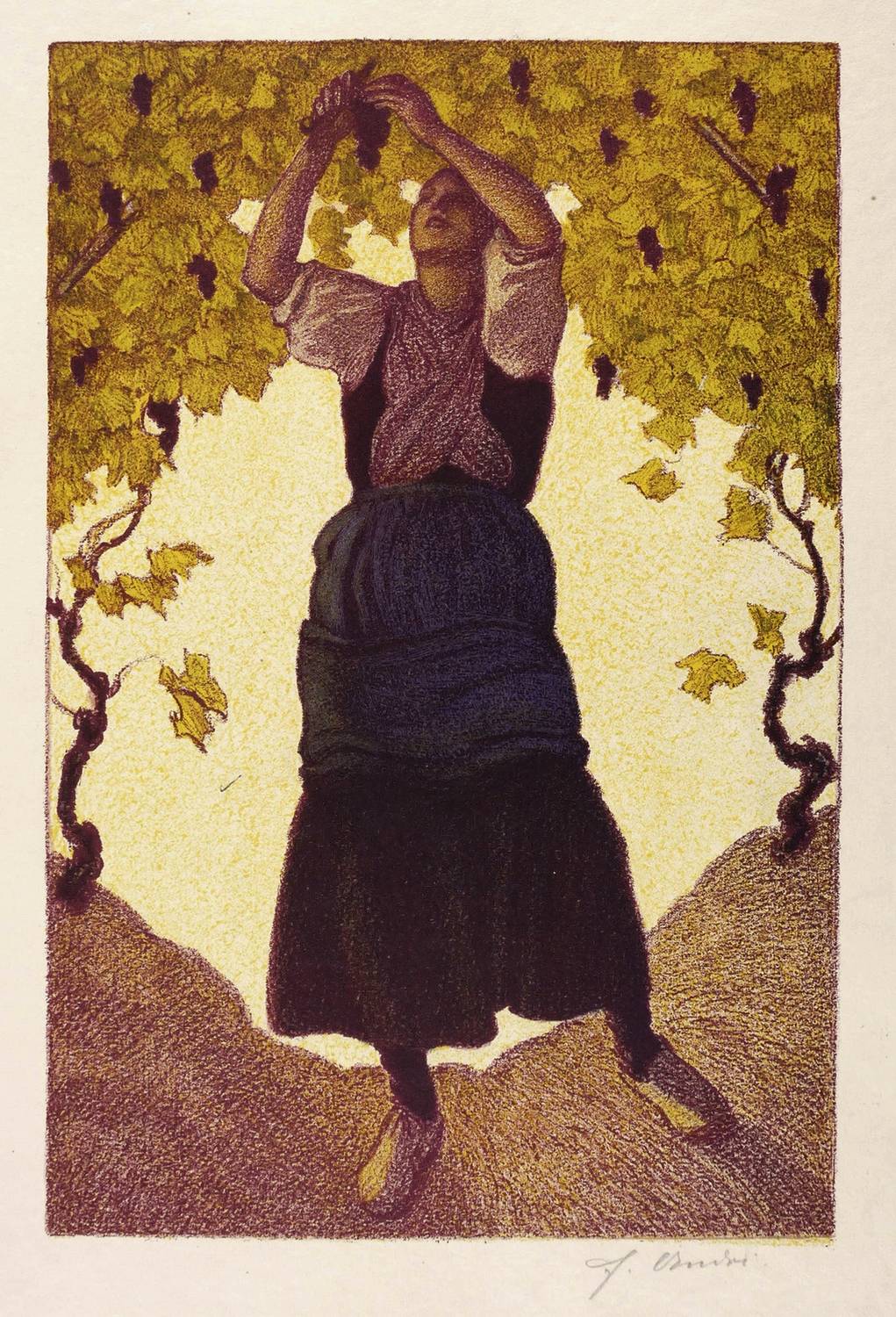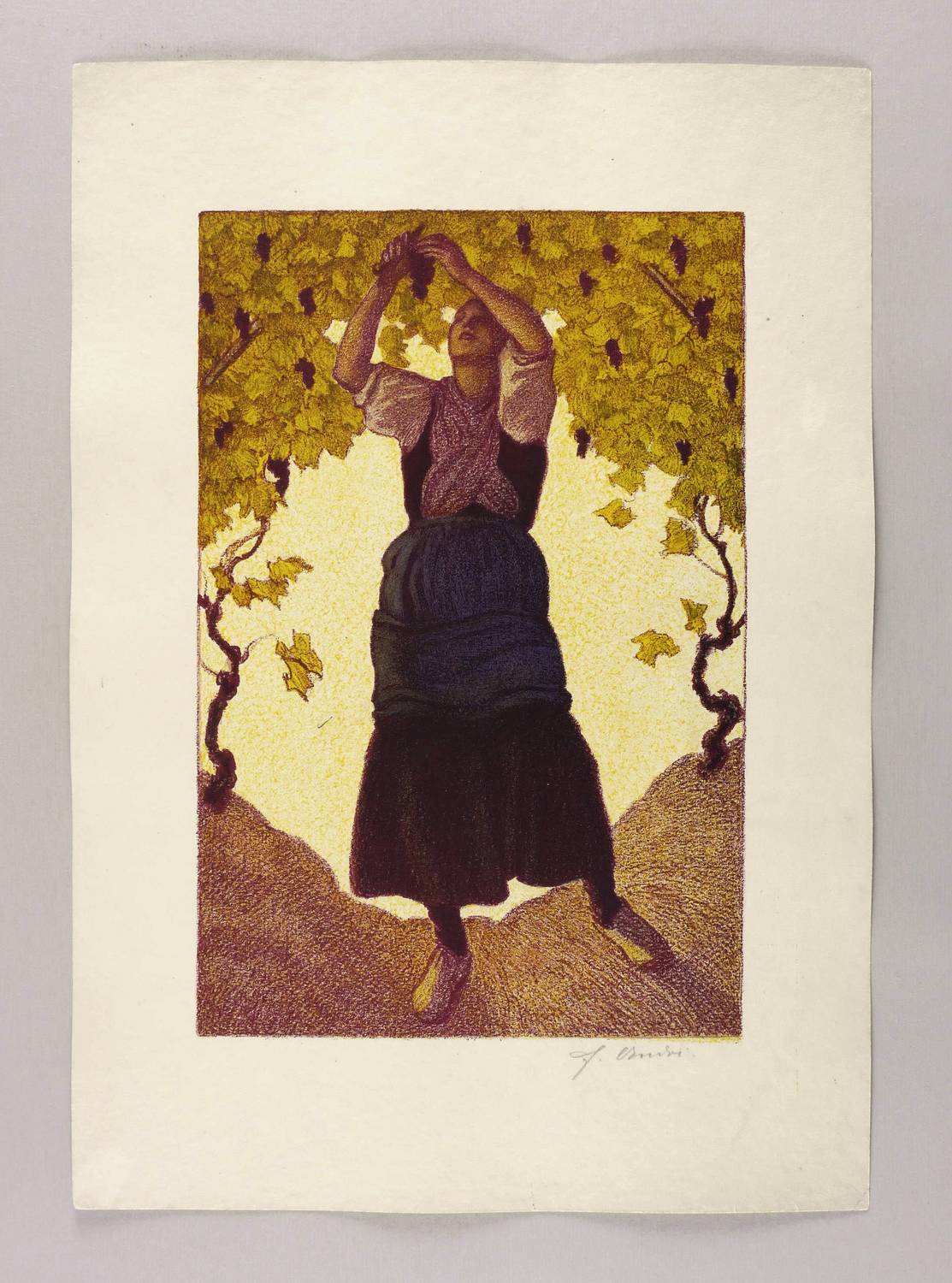 1910-1920. Farblithografie / Kreidelithografie, in 9 Farben, auf grobem gelbem Velinkarton. – Originale Künstlergrafik, von Ferdinand Andri. – 34,8 x 23,2 cm (Darstellung / Druckbild), 49 x 34 cm (Blatt).