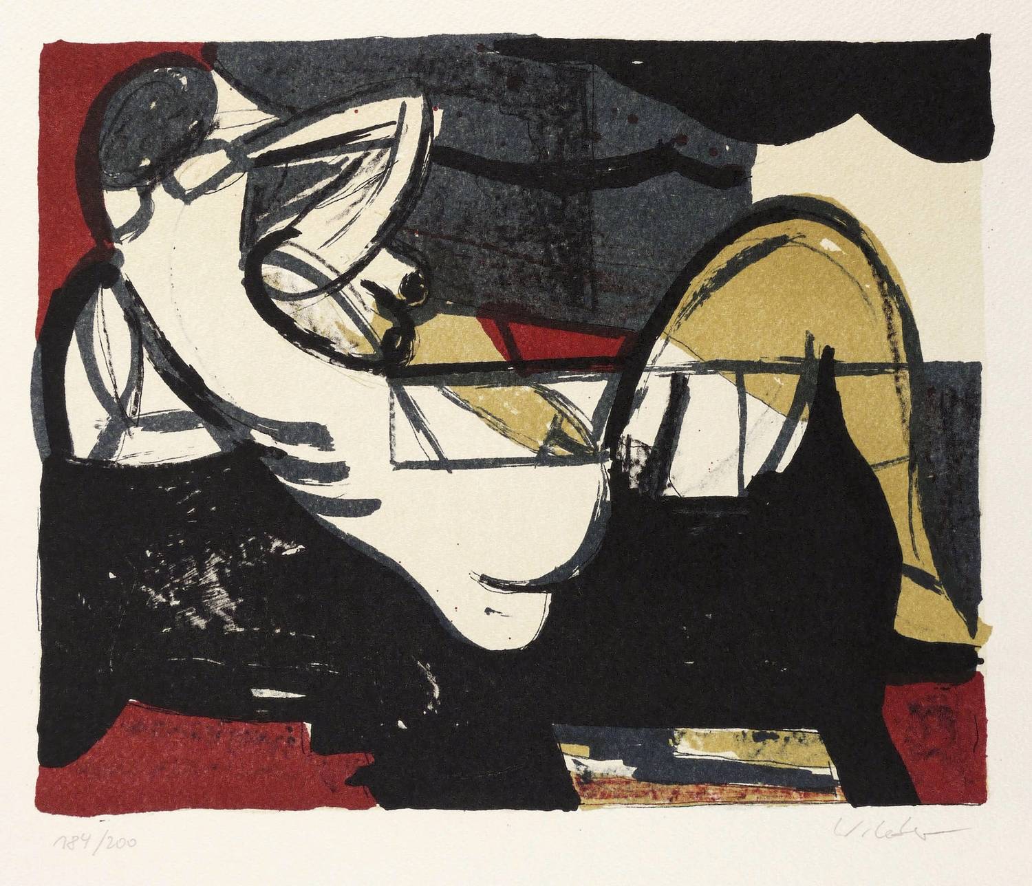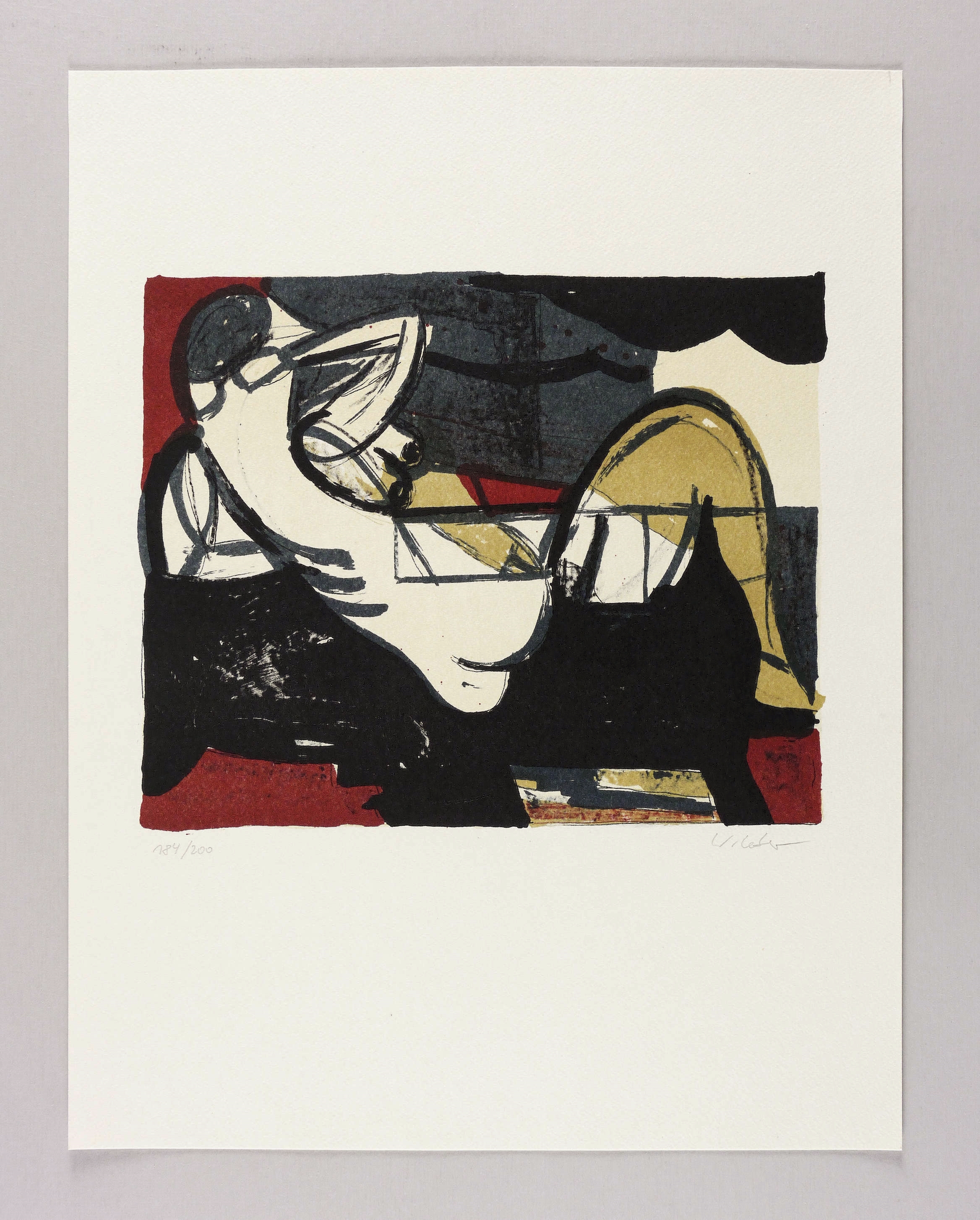 2005. Farblithografie / Kreide- & Pinsellithografie, in 4 Farben, auf gehämmertem hellgelbem Karton. – Originale Künstlergrafik, von Wolfgang Leber. – Auflage Exemplar Nr. 184/200. – 23,0 x 28,2 cm (Darstellung / Druckbild), 45 x 35 cm (Blatt).