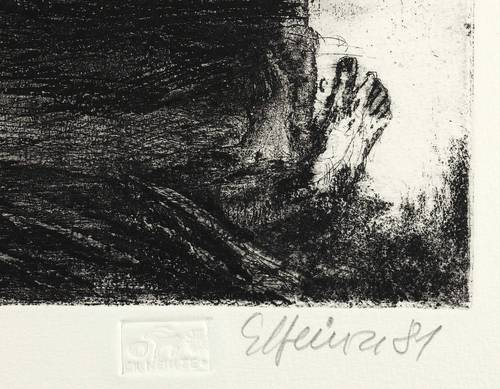 Rechts unten in Bleistift signiert und datiert. Dazu Prägestempel des Künstlers. Links Auflagenbezeichnung. Mittig Titel. – Sehr guter Zustand.