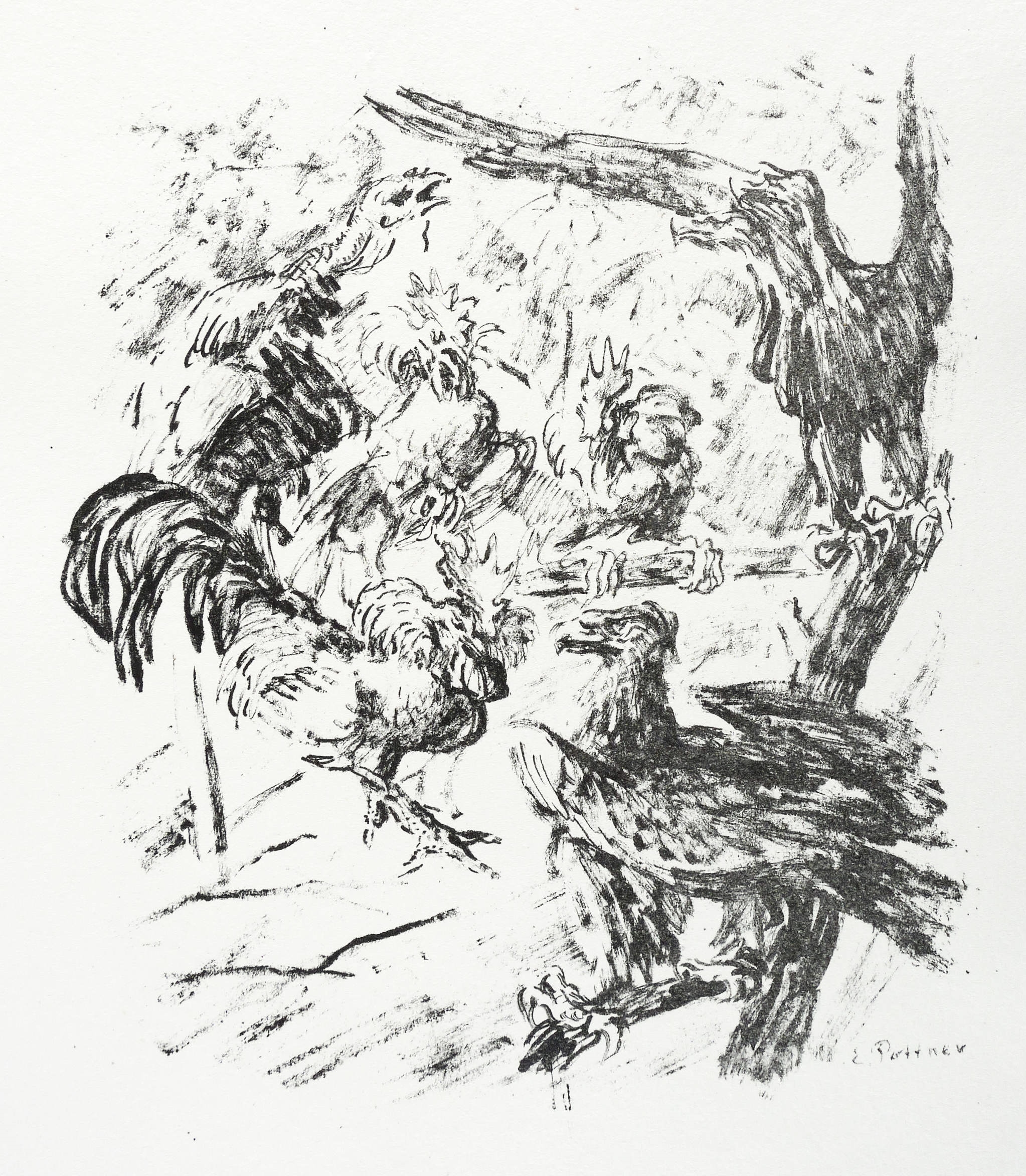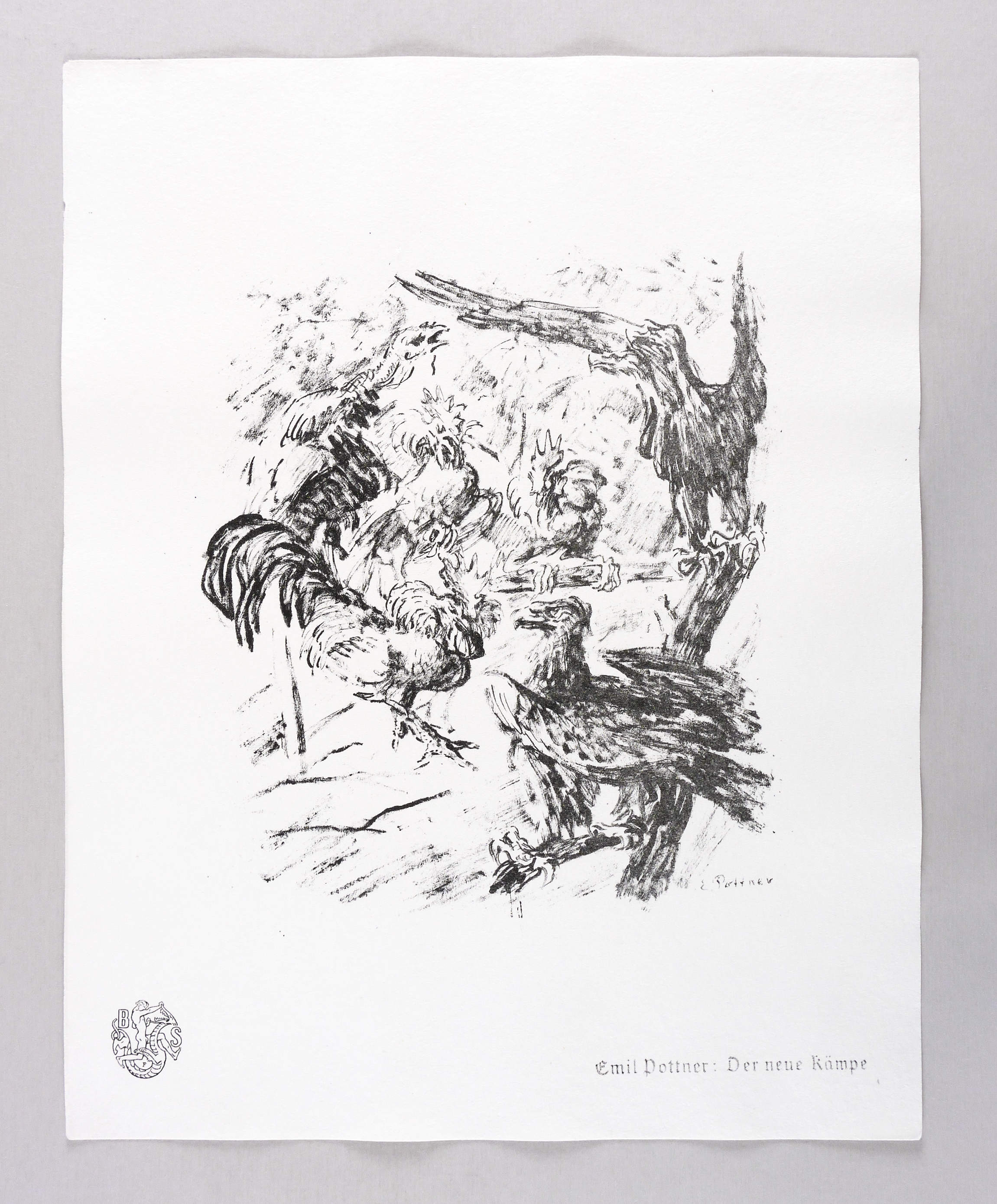 Aus: Krieg und Kunst. Original-Steinzeichnungen der Berliner Sezession (Berlin: Julius Bard 1915). – Nicht handsigniert. Im Stein rechts unten signiert: ″E. Pottner″. Im Blattrand rechts unten typografisch bezeichnet: ″Emil Pottner: Der neue Kämpe″. Links Signet der Berliner Secession. – Tadellos. Sehr guter Zustand.