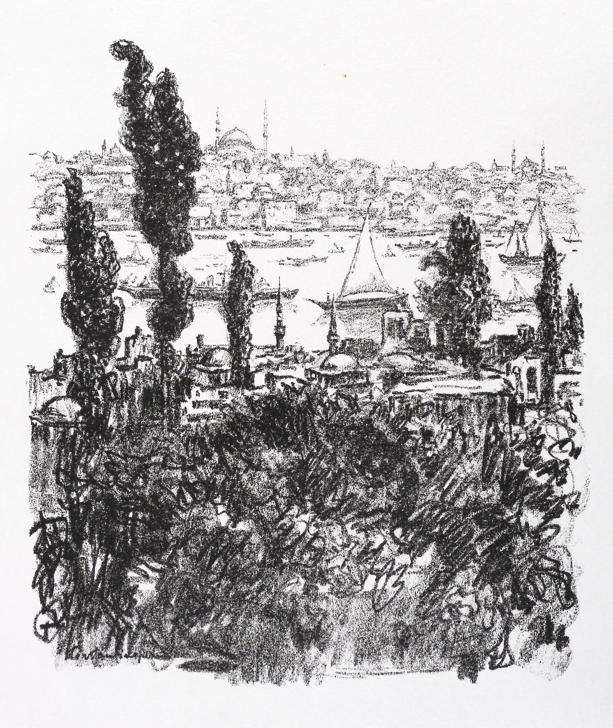 Aus: Krieg und Kunst. Original-Steinzeichnungen der Berliner Sezession (Berlin: Julius Bard 1916). – Nicht handsigniert. Im Stein links unten bezeichnet: ″Constantinopel″. Im Blattrand rechts unten typografisch bezeichnet: ″Hermann Struck: Constantinopel″. Links unten Vignette der Berliner Secession. – Originalrandiges Exemplar. Sehr guter Zustand.