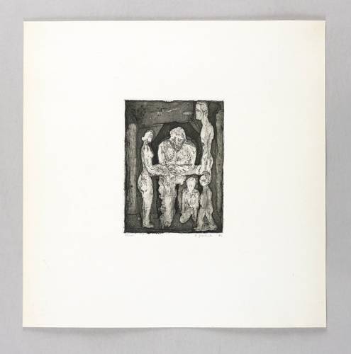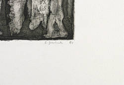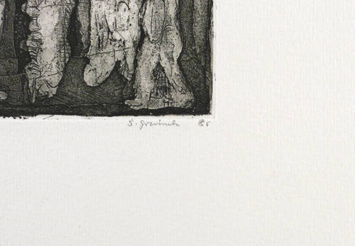 1986. Radierung / Aquatinta & Strichätzung, in Schwarz, auf hellchamois Weißenborn. – Originale Künstlergrafik, von Sabina Grzimek. – 15,8 x 11,7 cm (Darstellung / Platte), 36 x 36 cm (Blatt).