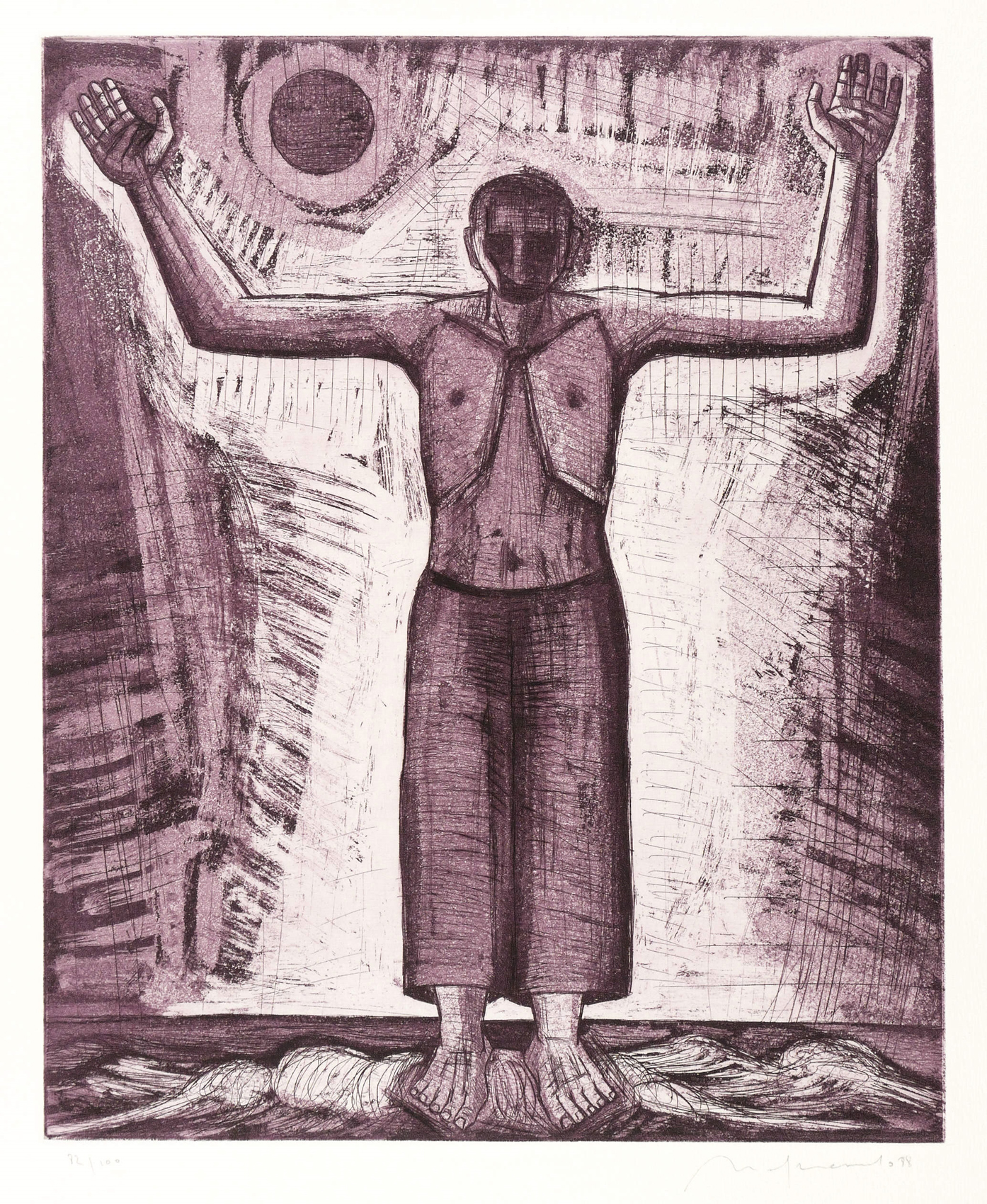 Wetterney 369 b. – Aus: Nuria Quevedo, Grafische Blätter zu Volker Braun. Der Eisenwagen (Halle/Leipzig: Mitteldeutscher Verlag 1988). – Rechts unten in Bleistift signiert und datiert. Links Auflagenbezeichnung. – Druck von Manfred Wolf, Berlin. – Tadelloses Exemplar. Sehr guter Zustand.