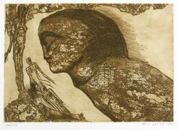 1983. Radierung / Reservage, Roulette & Strichätzung, in Dunkelbraun, auf hartem hellchamois Weißenborn. – Originale Künstlergrafik, von Falko Warmt. – Auflage Exemplar Nr. 177/200. – 23,5 x 33,2 cm (Darstellung / Platte), 37 x 35 cm (Blatt).