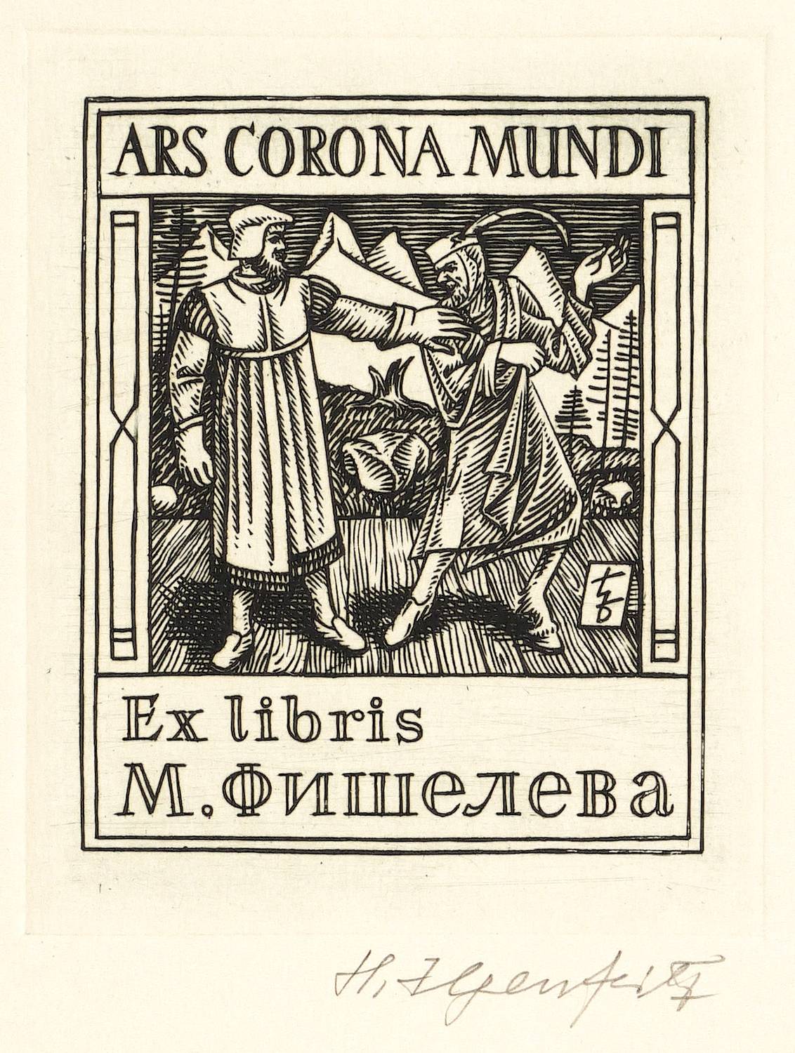 Heinrich Ilgenfritz (1899 Nürnberg - 1969 Kleinmachnow). Deutscher Maler, Grafiker, Formgestalter und Exlibris-Künstler. Anfänge im Offenen Zeichensaal in Nürnberg. 1919-21 Studium an der Kunstgewerbeschule Nürnberg. 1922-27 als Graveur und Entwurfszeichner in Flensburg, Kiel und Bremen. In Worpswede Bekanntschaft mit Heinrich Vogeler und Otto Modersohn. 1927 Studienreise nach Paris und erste Kupferstiche. 1929 Meisterprüfung als Graveur für Kupfer- und Stahlstich in Kassel. 1928-32 Studium an der Staatlichen Kunstakademie Kassel. 1930 Albrecht-Dürer-Preis der Stadt Nürnberg. 1932-35 Studium an den Vereinten Staatsschulen für freie und angewandte Kunst Berlin bei Georg Walter Rössner (Meisterschüler bei Hans Meid). Danach Tätigkeit als kartografischer Kupferstecher, Architekturstecher, Buchgestalter und Illustrator. 1947-52 Dozent an der Hochschule für bildende und angewandte Kunst in Berlin-Weissensee. 1952-56 Leiter der Fachschule für Graphik, Druck und Werbung in Berlin-Oberschöneweide. 1956-61 Dozent an der Hochschule für Grafik und Buchkunst in Leipzig.