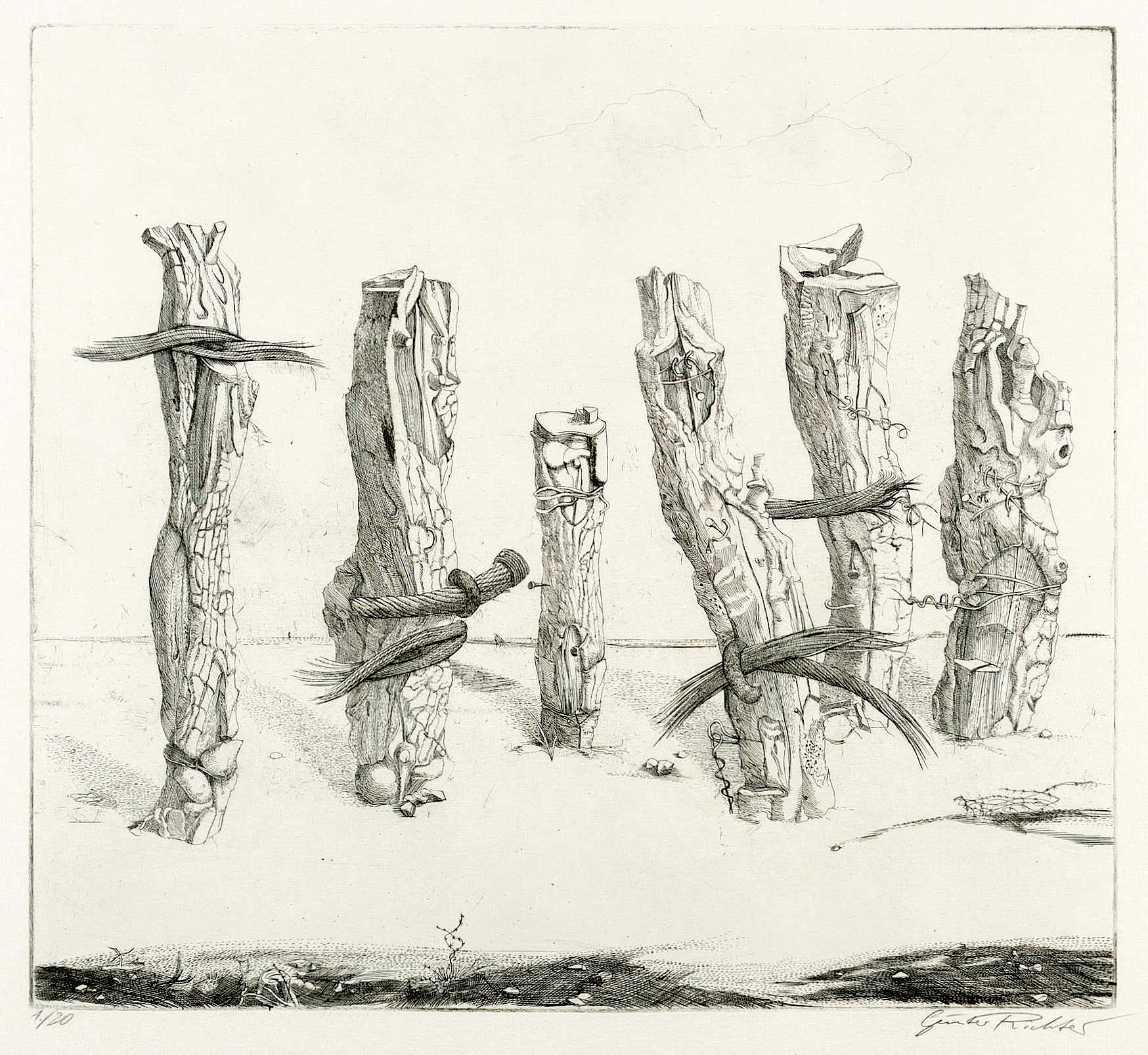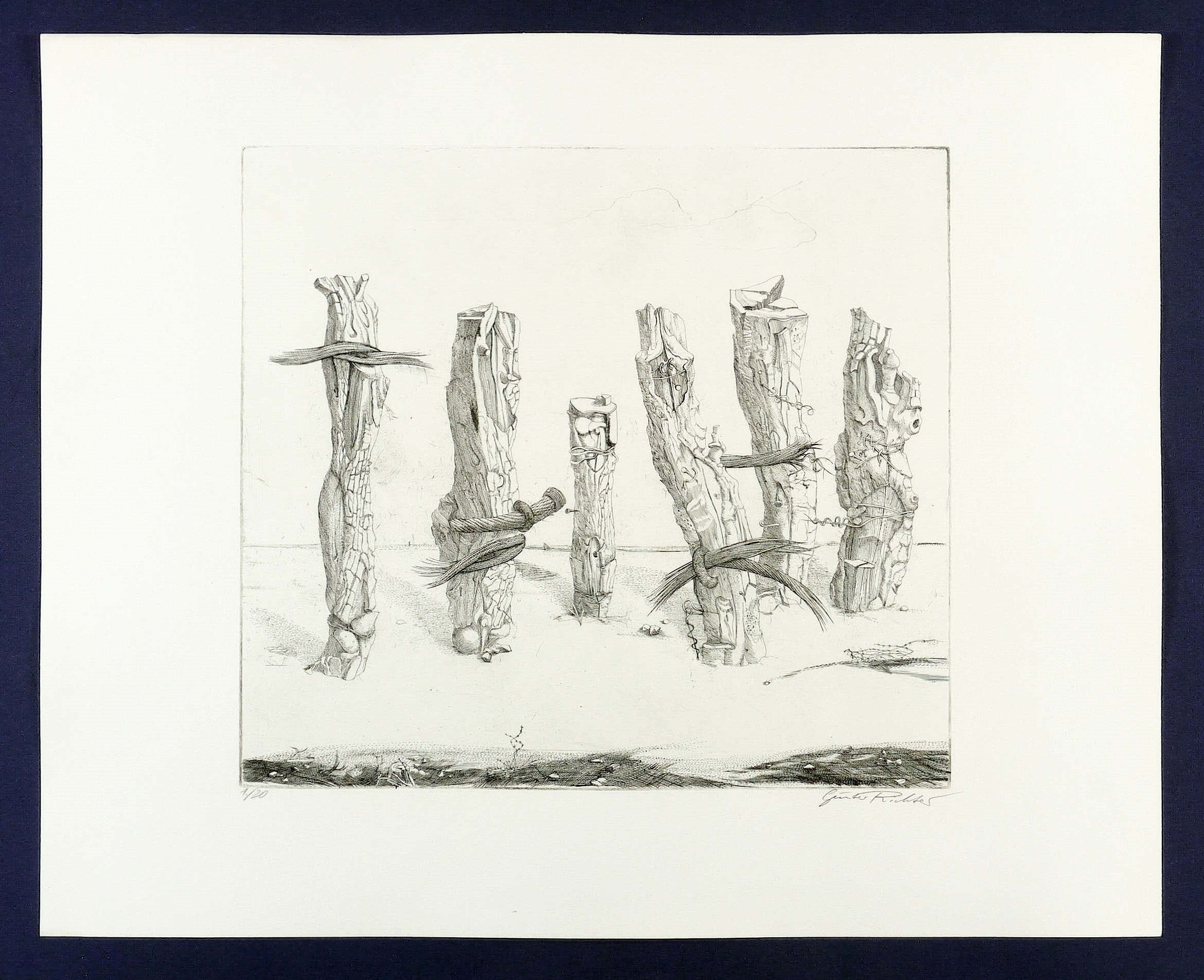 1979. Kupferstich / Linienstich, in Schwarz, auf gehämmertem Maschinenbütten. – Originale Künstlergrafik, von Günter Richter. – Auflage Exemplar Nr. 1/20. – 30,6 x 33,8 cm (Darstellung / Platte), 43 x 54 cm (Blatt).