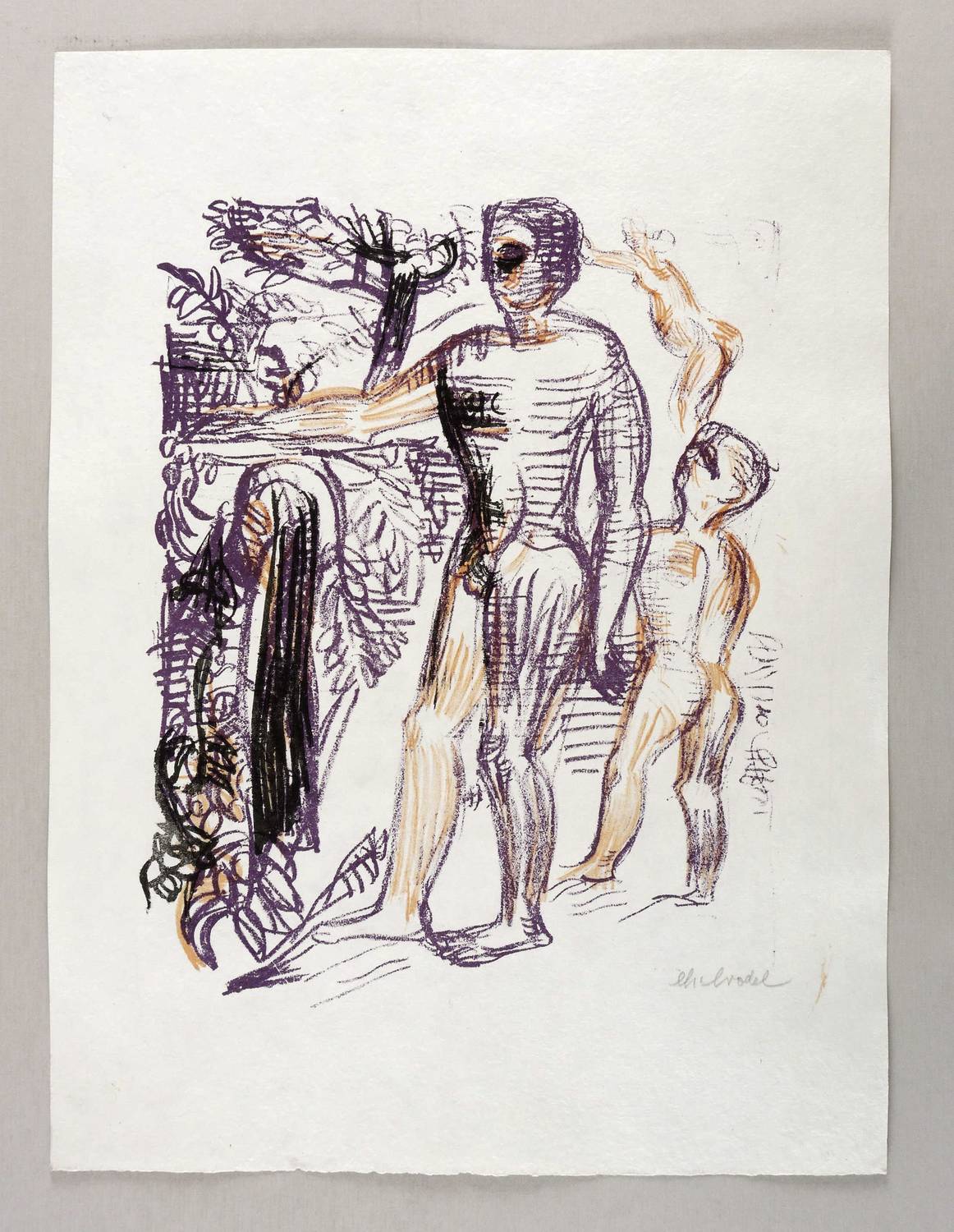 1923. Farblithografie / Kreide- & Pinsellithografie, in 3 Farben, auf wolkigem hellchamois Velin. – Originale Künstlergrafik, von Charles Crodel. – Künstlerexemplar (e.a.). – 30,2 x 23,8 cm (Darstellung / Druckbild), 42 x 32 cm (Blatt).