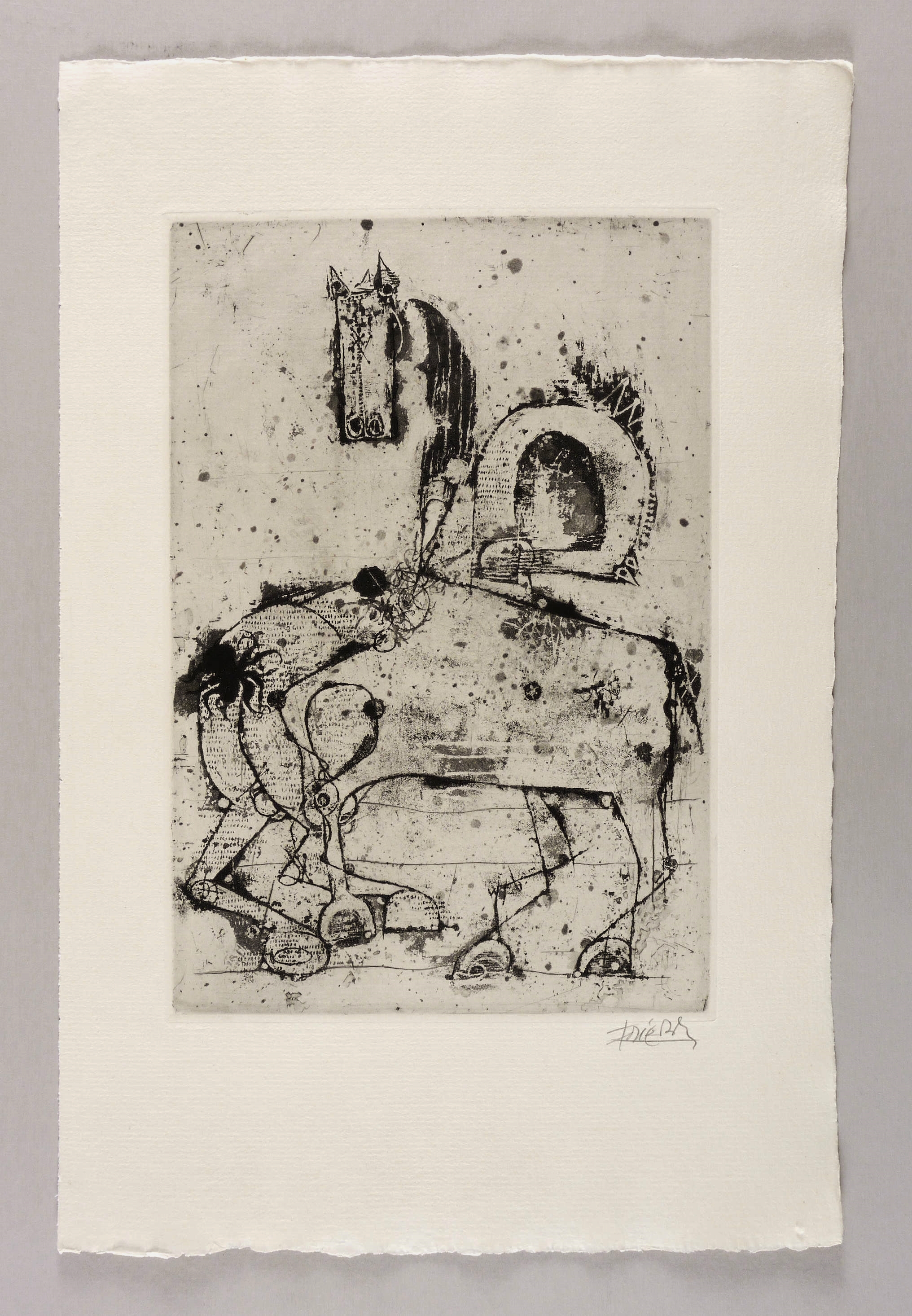 1963. Radierung / Aquatinta, in Schwarz, auf rauem hellchamois Auvergne. – Originale Künstlergrafik, von Johnny Friedländer. – Auflage 60 Exemplare. – 33,7 x 22,8 cm (Darstellung / Druckbild), 51 x 33 cm (Blatt), 34,4 x 23,5 cm (Platte).
