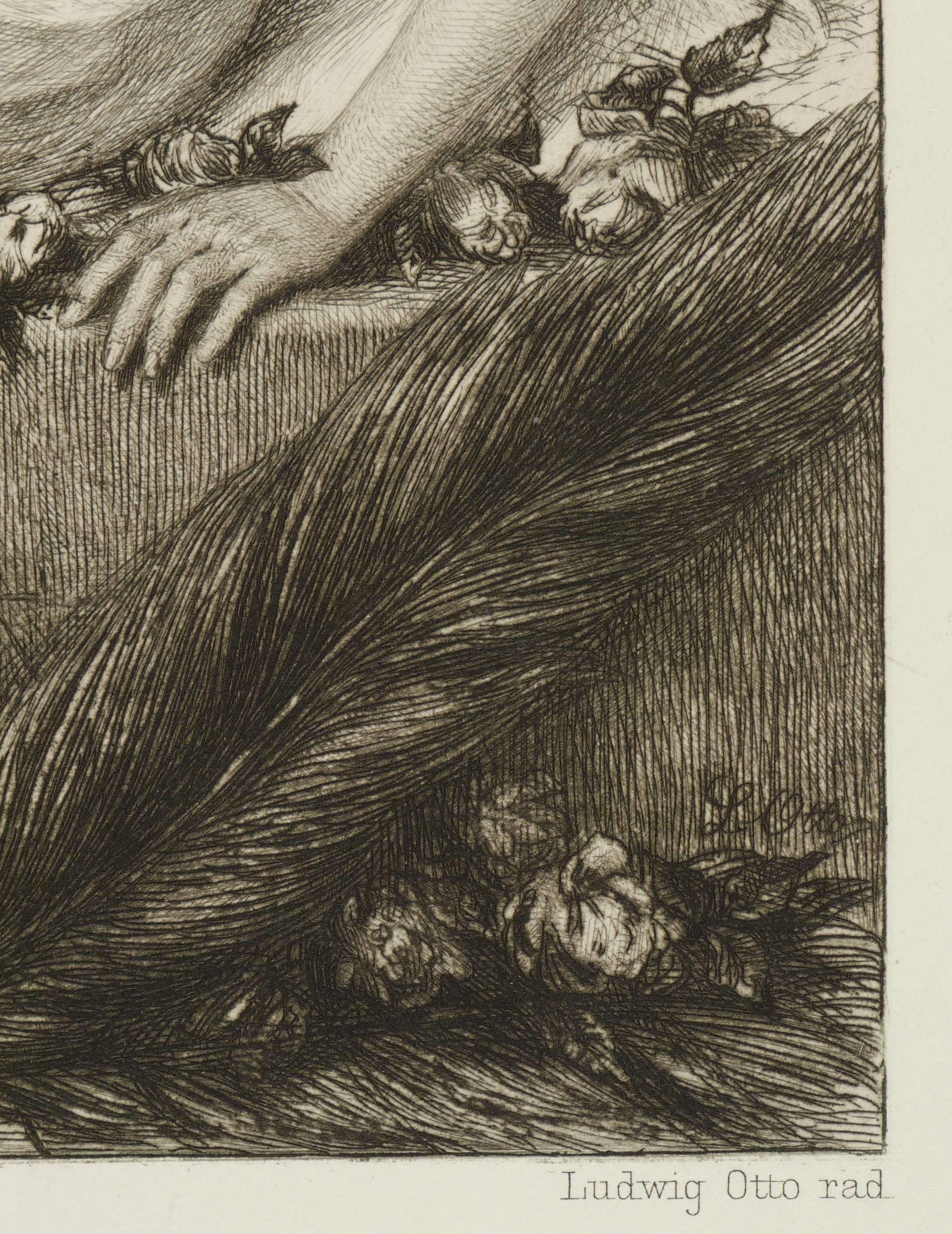 1900. Radierung / Strichätzung, auf Kupferdruckkarton. – Originale Künstlergrafik, von Ludwig Otto. – 29,1 x 19,8 cm (Darstellung / Einfassungslinie), 32,5 x 22,2 cm (Platte), 43 x 33 cm (Blatt).