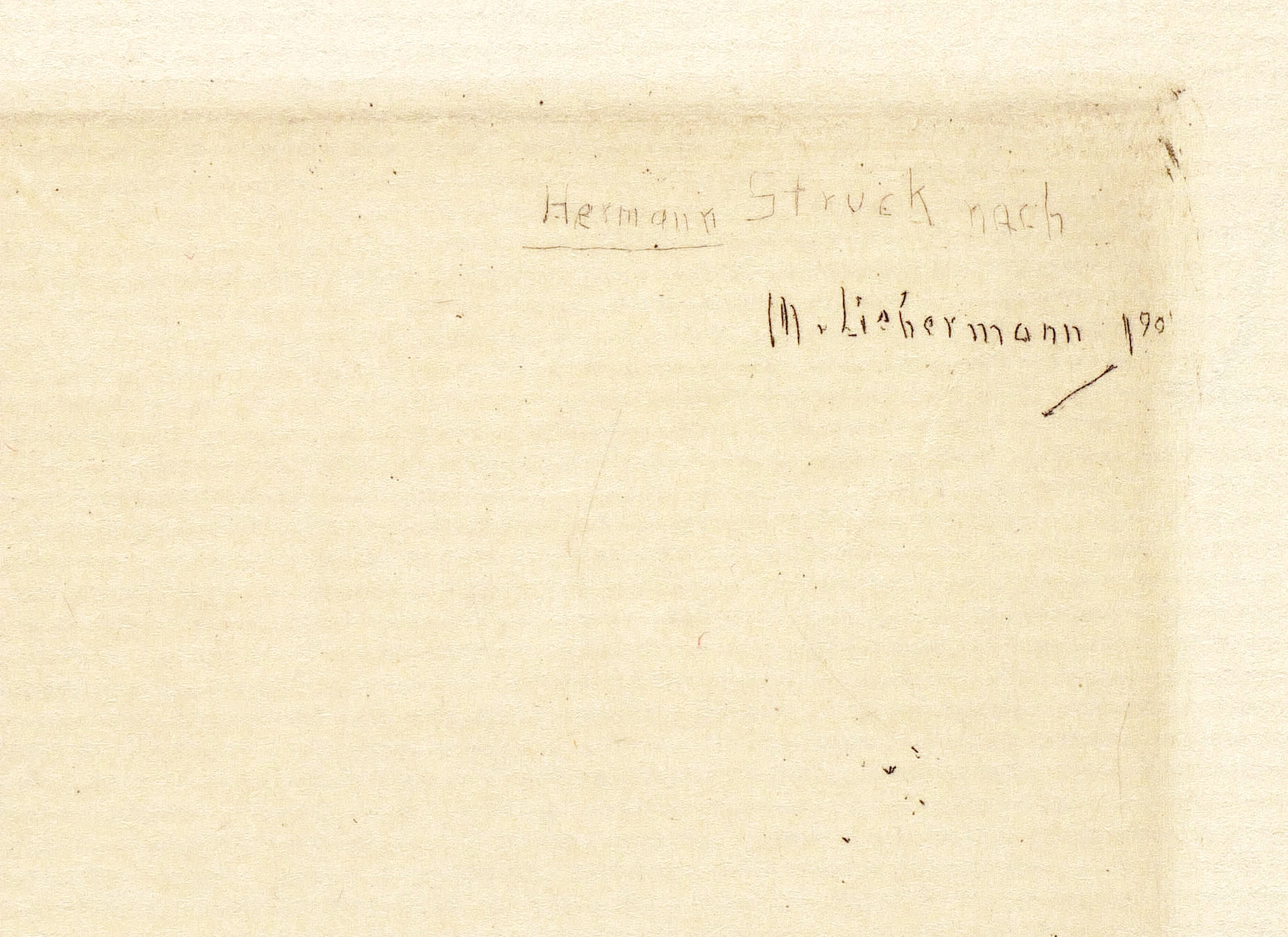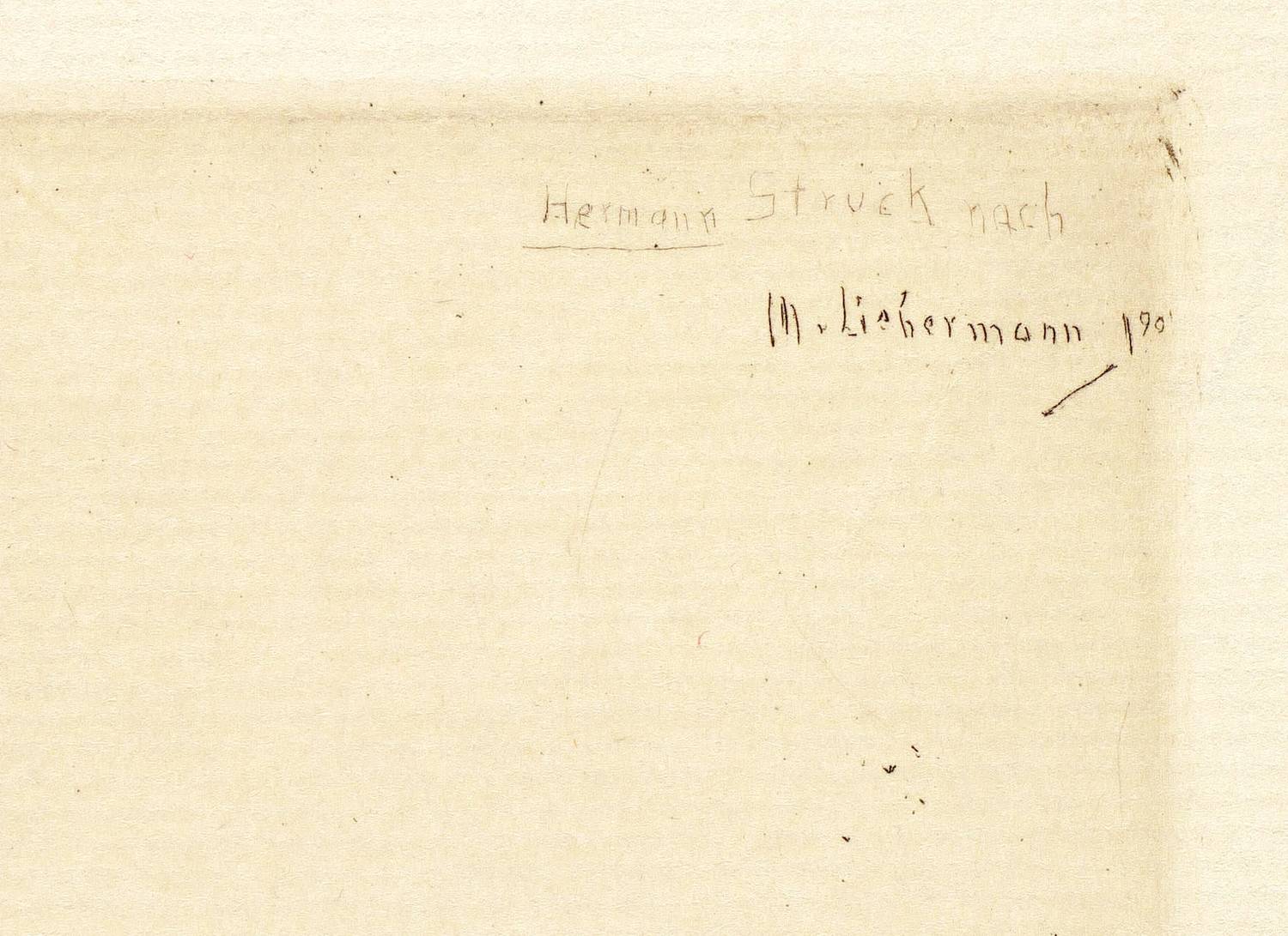 Hermann Struck (1876 Berlin - 1944 Haifa). Deutsch-jüdischer Maler, Radierer und Lithograf. Studium an der Berliner Kunstakademie. Autor des Buches "Die Kunst des Radierens" (1908). In dieser Technik unterrichtete er u.a. Marc Chagall, Lovis Corinth, Joseph Budko und Lesser Ury. 1923 Emigration nach Palästina. Mitglied der Bezalel Akademie für Kunst und Design in Jerusalem Mitbegründer des Tel Aviv Museum of Art.