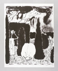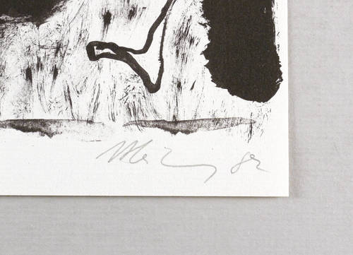 1982. Offsetlithografie / Pinsellithografie, in Schwarz, auf leichtem weißem Maschinenbütten. – Originale Künstlergrafik, von Helge Leiberg. – Auflage Exemplar Nr. 5/100. – 44 x 35 cm (Blatt), 40,5 x 33,5 cm (Darstellung / Druckbild).