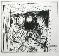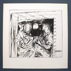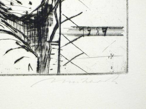 1987. Radierung / Kaltnadel. – Von Reinhard Minkewitz. – Auflage Exemplar Nr. 27/200. – 26,0 x 28,9 cm (Darstellung / Platte), 55 x 38,8 cm (Blatt).