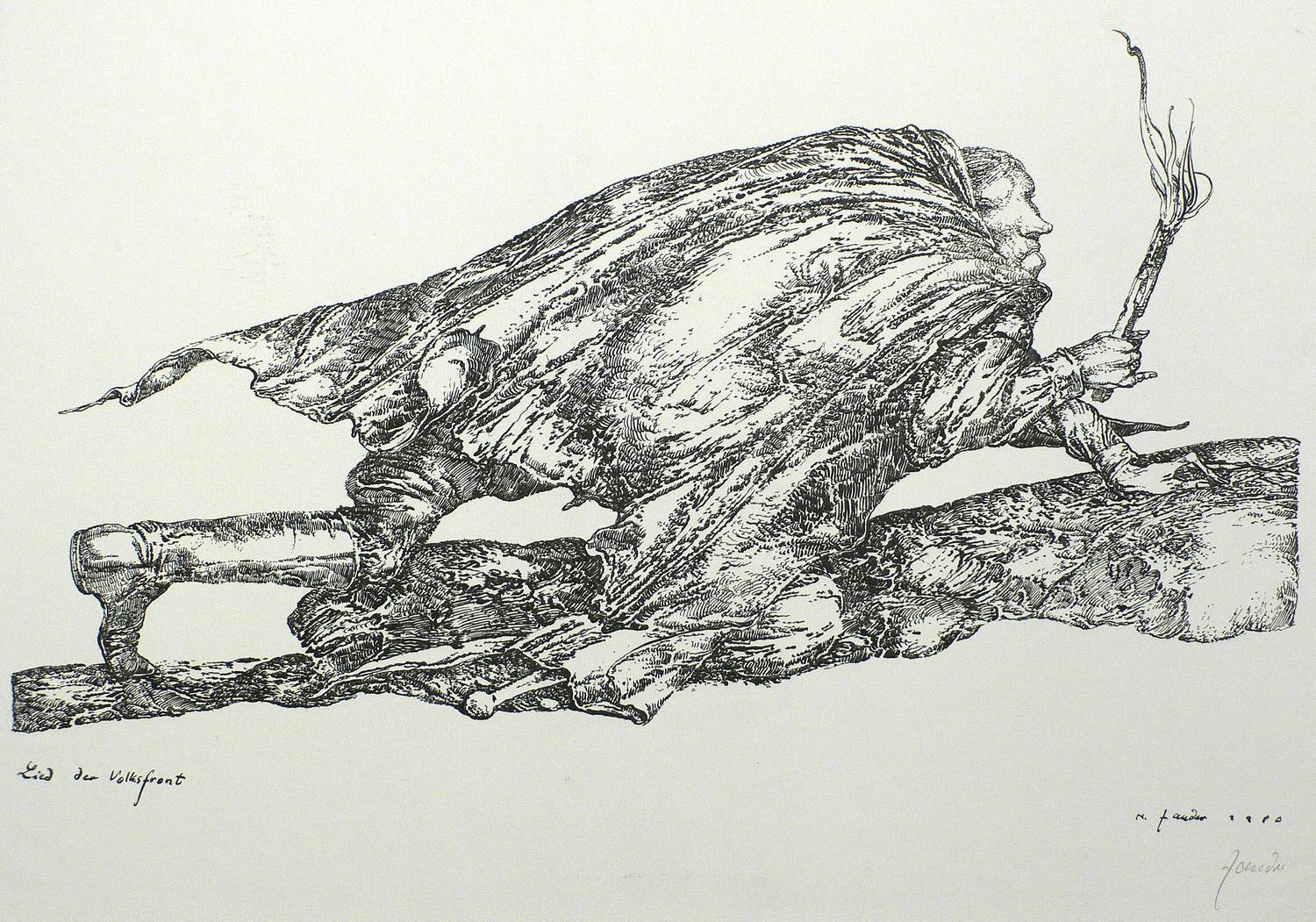 1980. Lithografie / Federlithografie, in Schwarz, auf Büttenpapier. – Originale Künstlergrafik, von Heinz Zander. – 24,0 x 42,5 cm (Darstellung), 39 x 54 cm (Blatt).