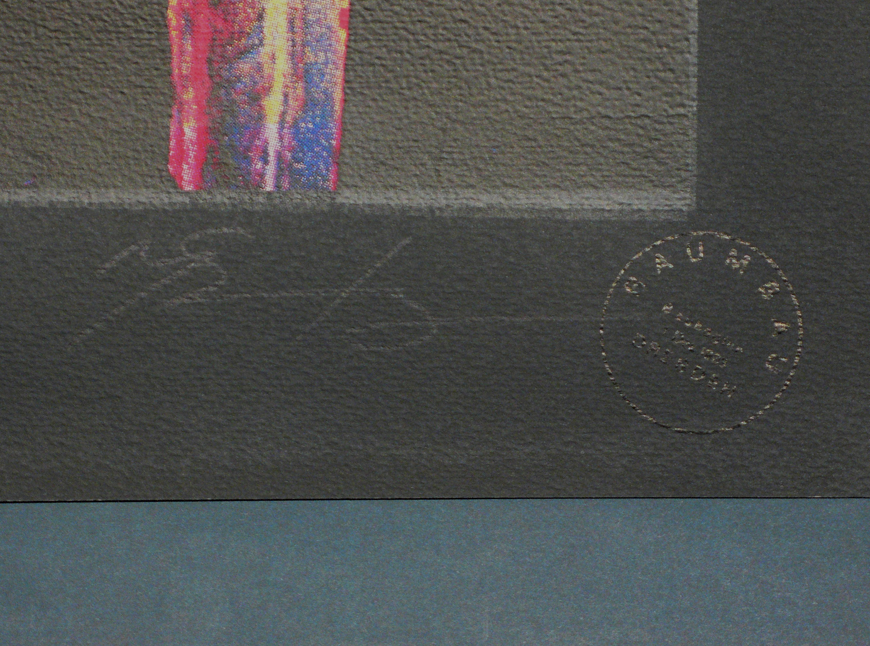 1989. Farbsiebdruck / Farbserigrafie, auf Velinkarton. – Originale Künstlergrafik, von Jörg Sonntag. – Auflage Exemplar Nr. 15/28. – 60 x 43 cm (Darstellung), 70 x 49 cm (Blatt).