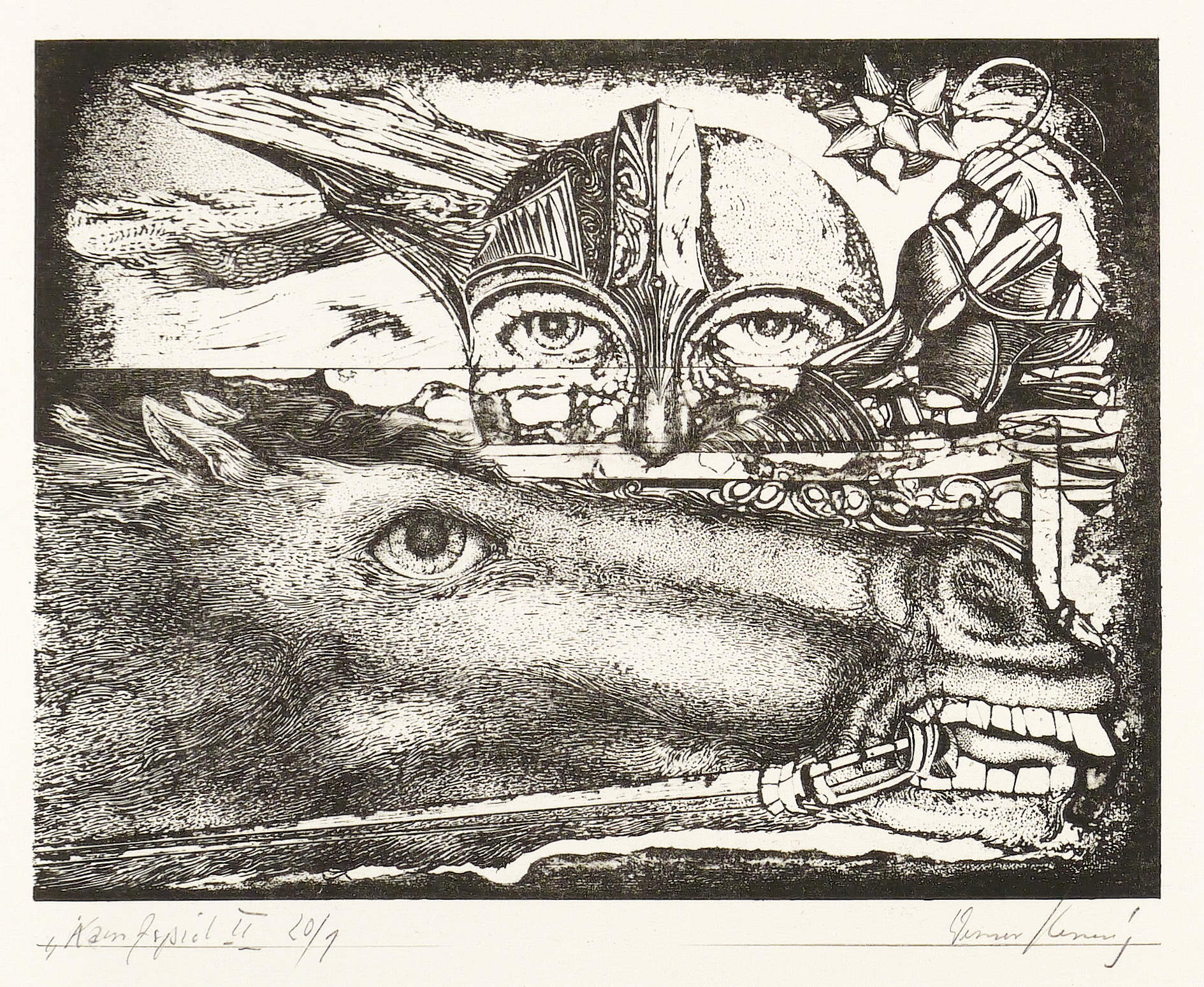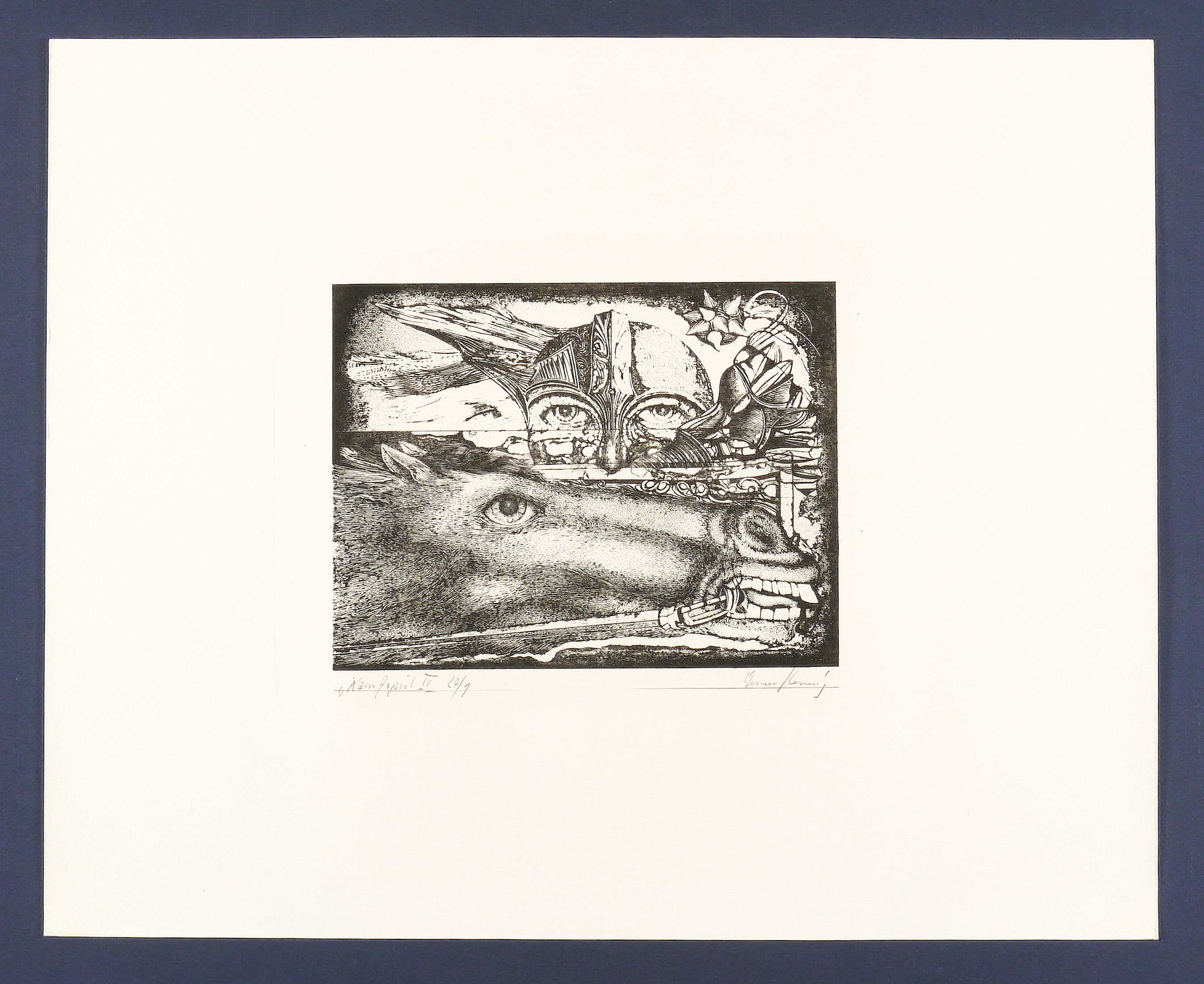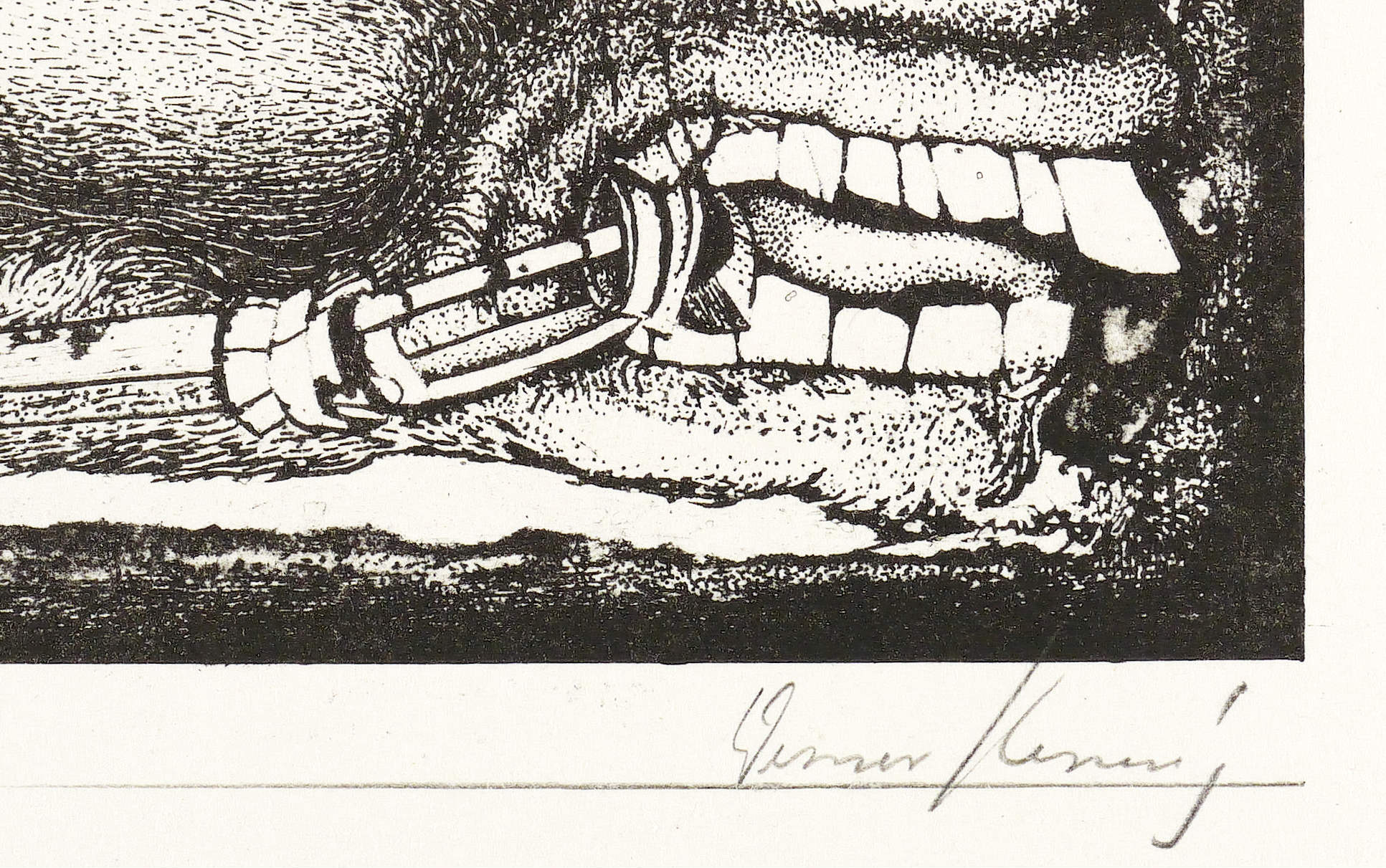 1979. Lithografie / Federlithografie, in Schwarz, auf gehämmertem Karton. – Originale Künstlergrafik, von Werner Hennig. – Auflage Exemplar Nr. 1/20. – 18,4 x 24,0 cm (Darstellung), 43 x 53 cm (Blatt).