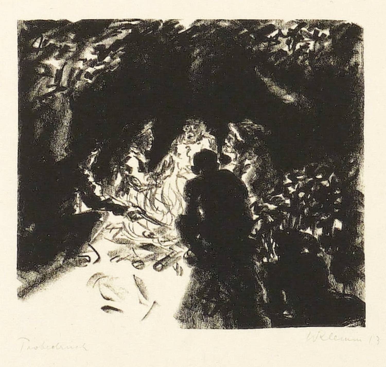 1913. Lithografie / Kreidelithografie, in Schwarz, auf feinem gelblichem Büttenpapier. – Originale Künstlergrafik, von Walther Klemm. – Probedruck. – 16,6 x 18,5 cm (Darstellung), 41 x 56 cm (Blatt).