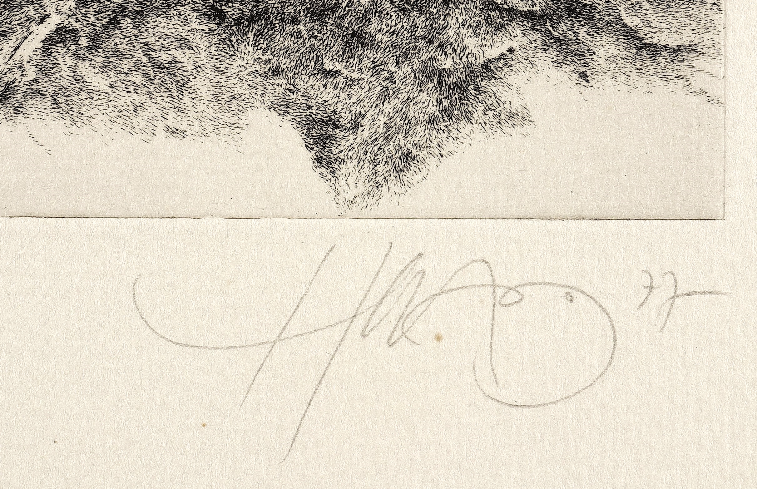 In der Platte unten links spiegelverkehrt signiert. Rechts unten in Bleistift signiert und datiert. Links eigenhändige Auflagenbezeichnung. – Sehr gut erhalten.