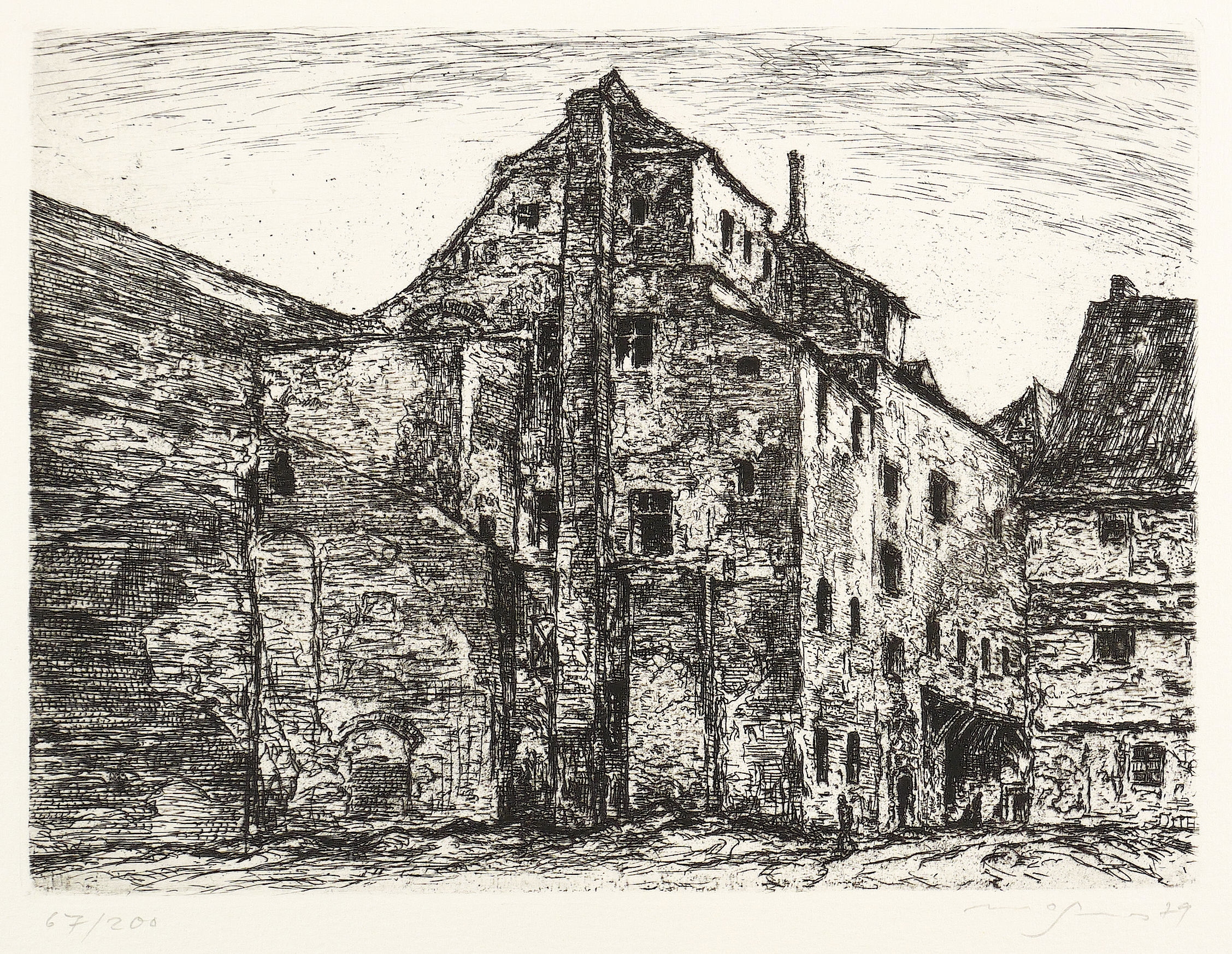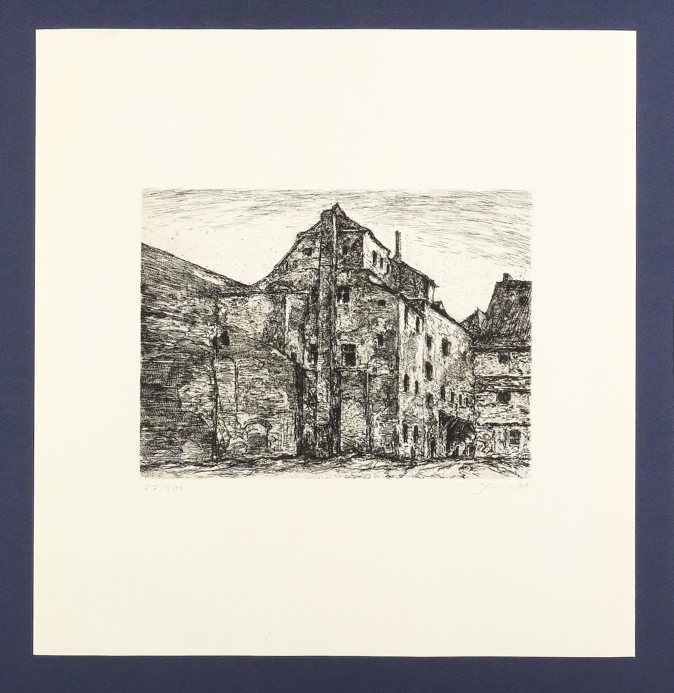 Klaus Magnus (1936 Gumbinnen / heute Gussew, lebt und arbeitet in Fulda). Deutscher Grafiker. 1957-62 Studium an der Hochschule für Bildende Künste in Dresden (HfBK) bei Hans Theo Richter und Max Schwimmer. 1966–69 Meisterschüler bei Hans Theo Richter. Danach als Grafiker in Berlin, wo ihn vor allem die Altberliner Viertel zu nachgerade beseelten Häuser-Porträts anregten. Sein Interesse gilt neben den historischen Hausfassaden der Landschaft, der Stadtlandschaft und dem Stillleben. Landschaftsmotive waren zunächst der Kaukasus, später Andalusien und die Röhn.