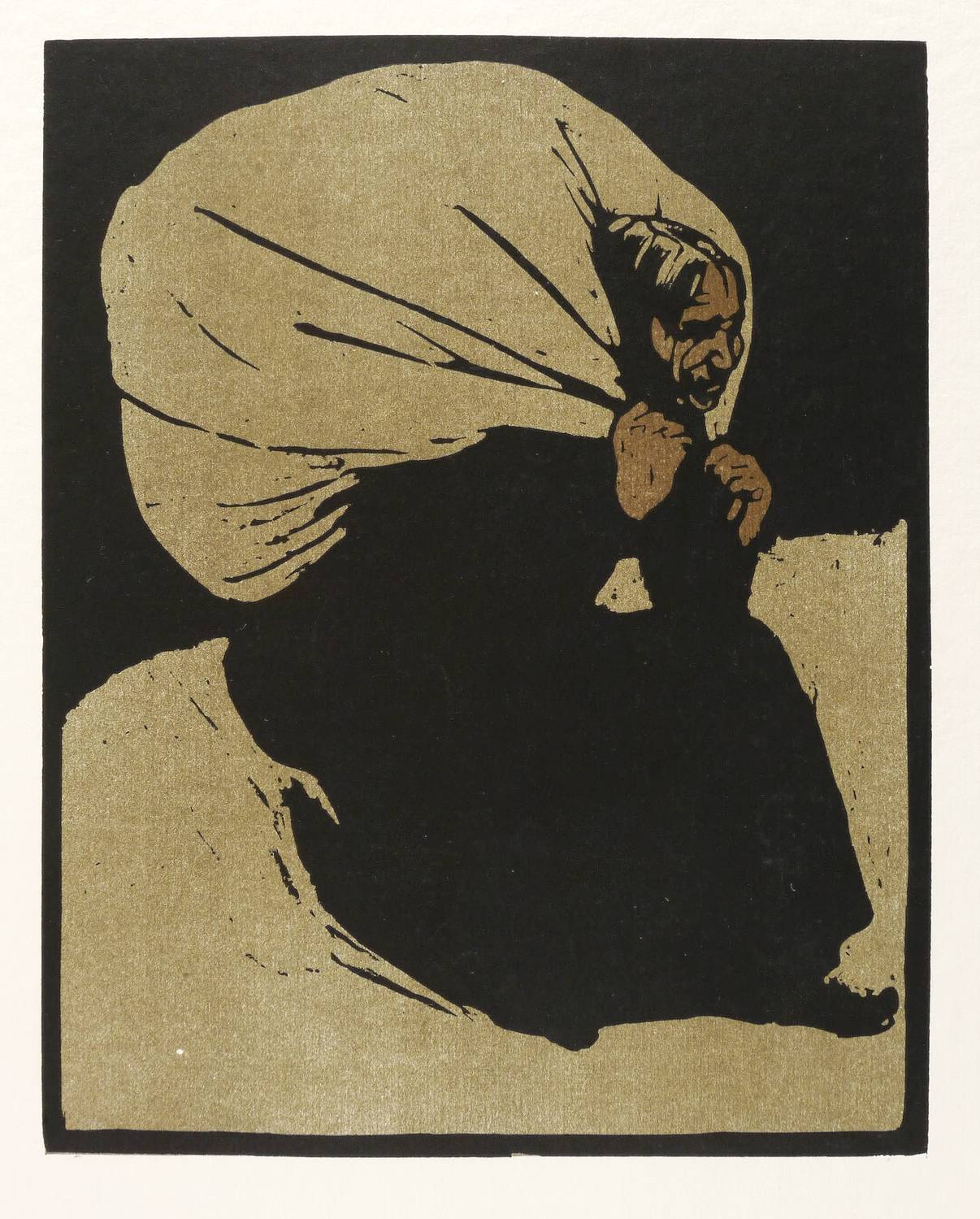 Söhn HDO 52803-4. – Aus: Pan (Berlin: Fontane 1897/1898), Bd. 3. – Links unten typografisch bezeichnet: "WILLIAM NICHOLSON, ALTE FRAU / ORIGINALHOLZSCHNITT". – Tadellos. Sehr guter Erhaltungszustand.