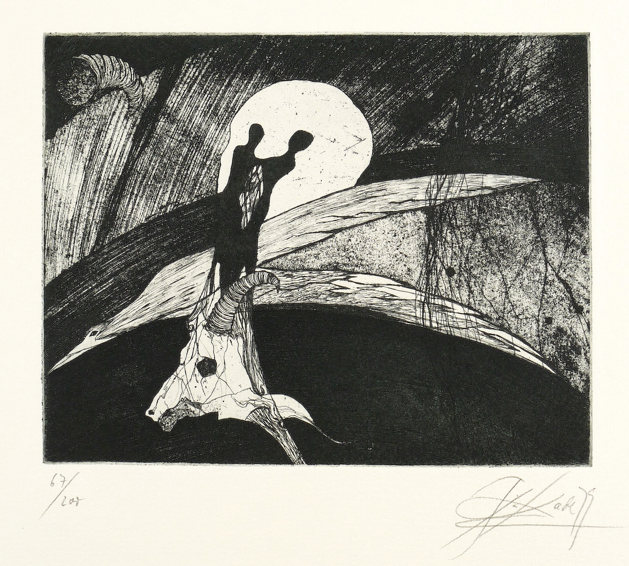 1979. Radierung / Strichätzung & Reservage, in Schwarz, auf hellem Büttenpapier. – Originale Künstlergrafik, von Gregor Torsten Kozik. – Auflage Exemplar Nr. 67/200. – 15,9 x 20,2 cm (Darstellung / Platte), 37 x 35 cm (Blatt).