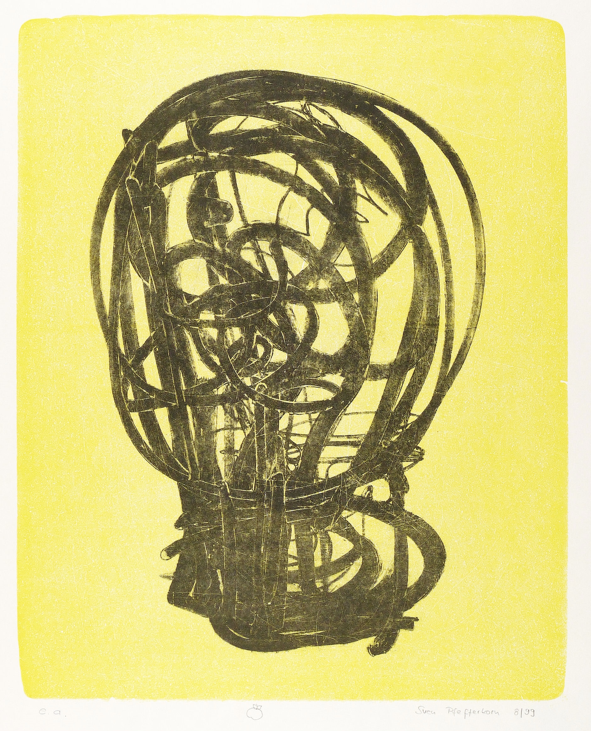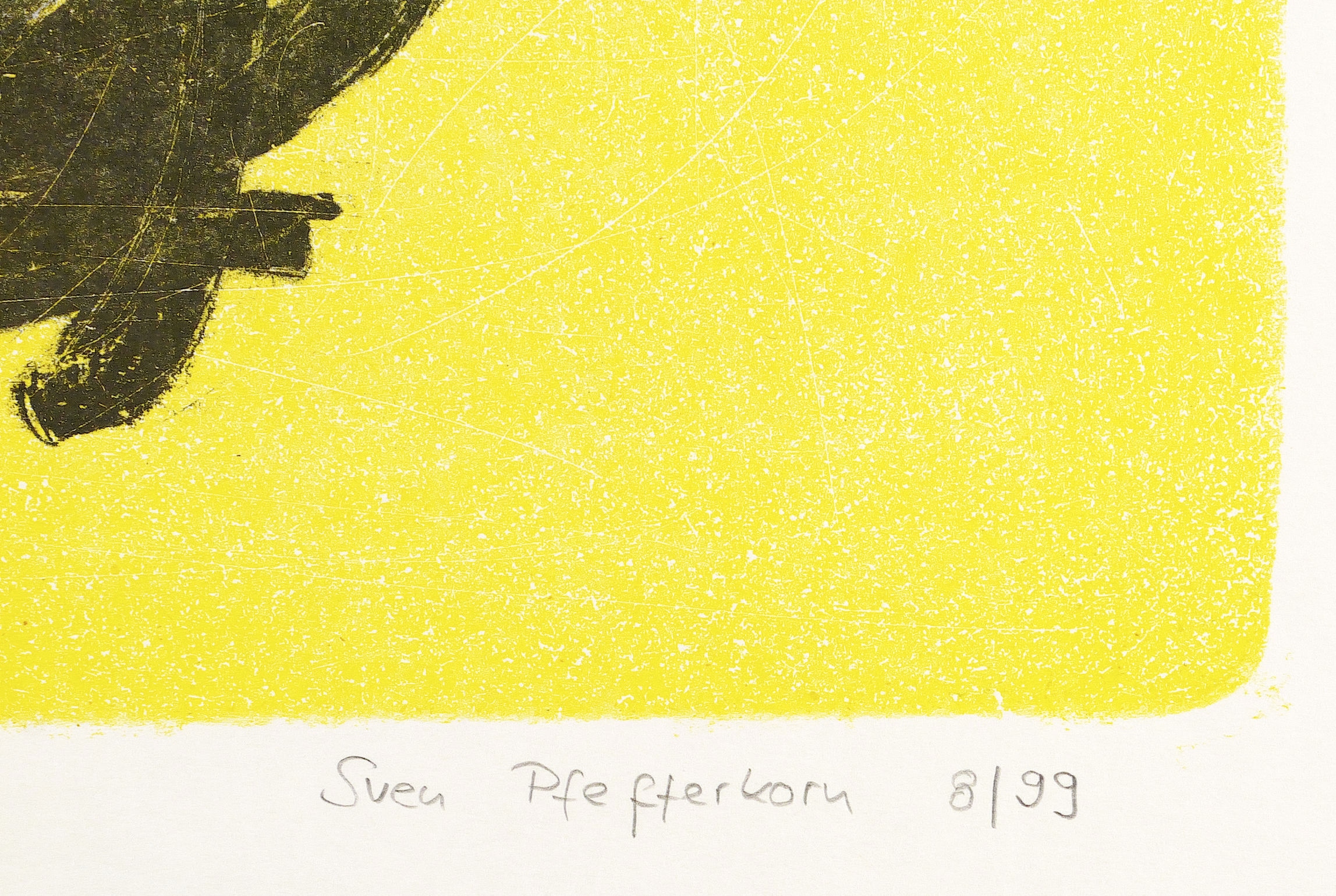 1999. Farblithografie / Pinsellithografie, in Gelb & Schwarz, auf weißem Karton. – Von Sven Pfefferkorn. – Künstlerexemplar (e.a.). – 53,7 x 43,0 cm (Darstellung), 72,5 x 55 cm (Blatt).